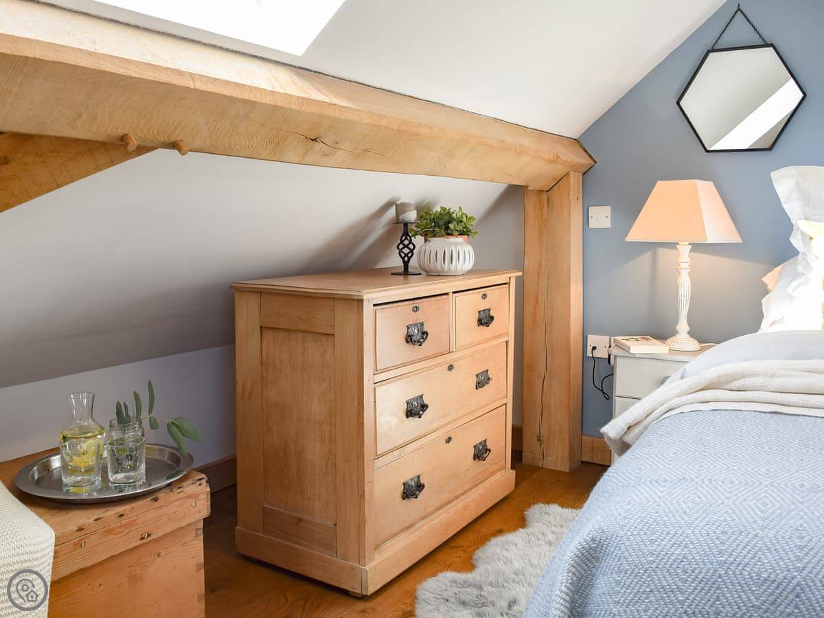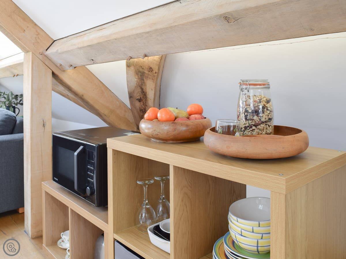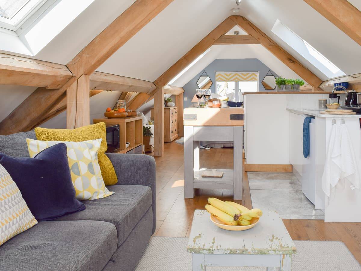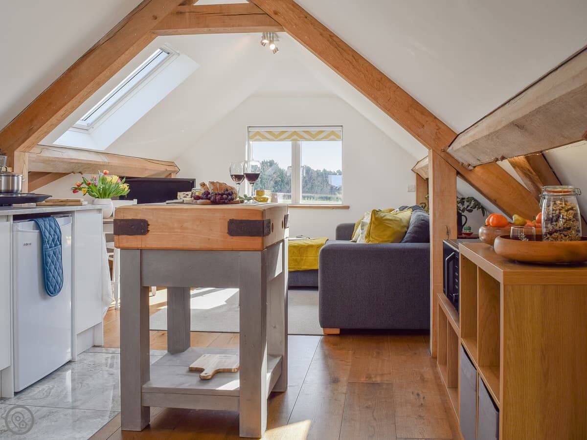 Shepherd's Loft is a first-floor studio apartment above our garage. It's in Benson, Oxfordshire, in the countryside. It sleeps two.