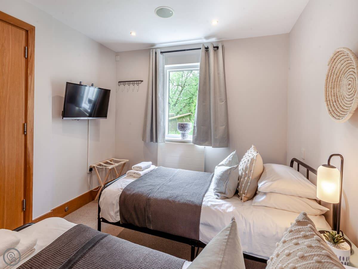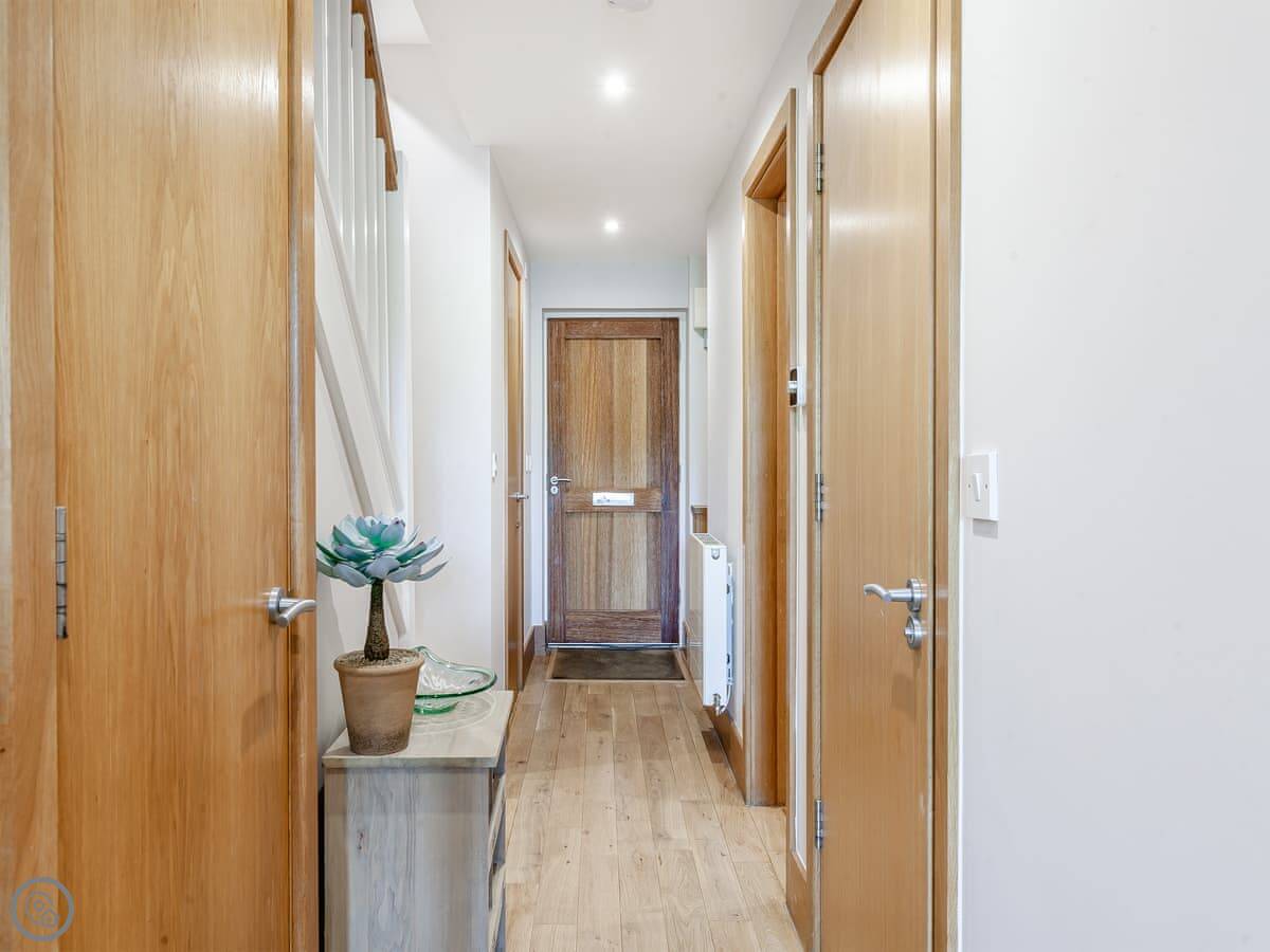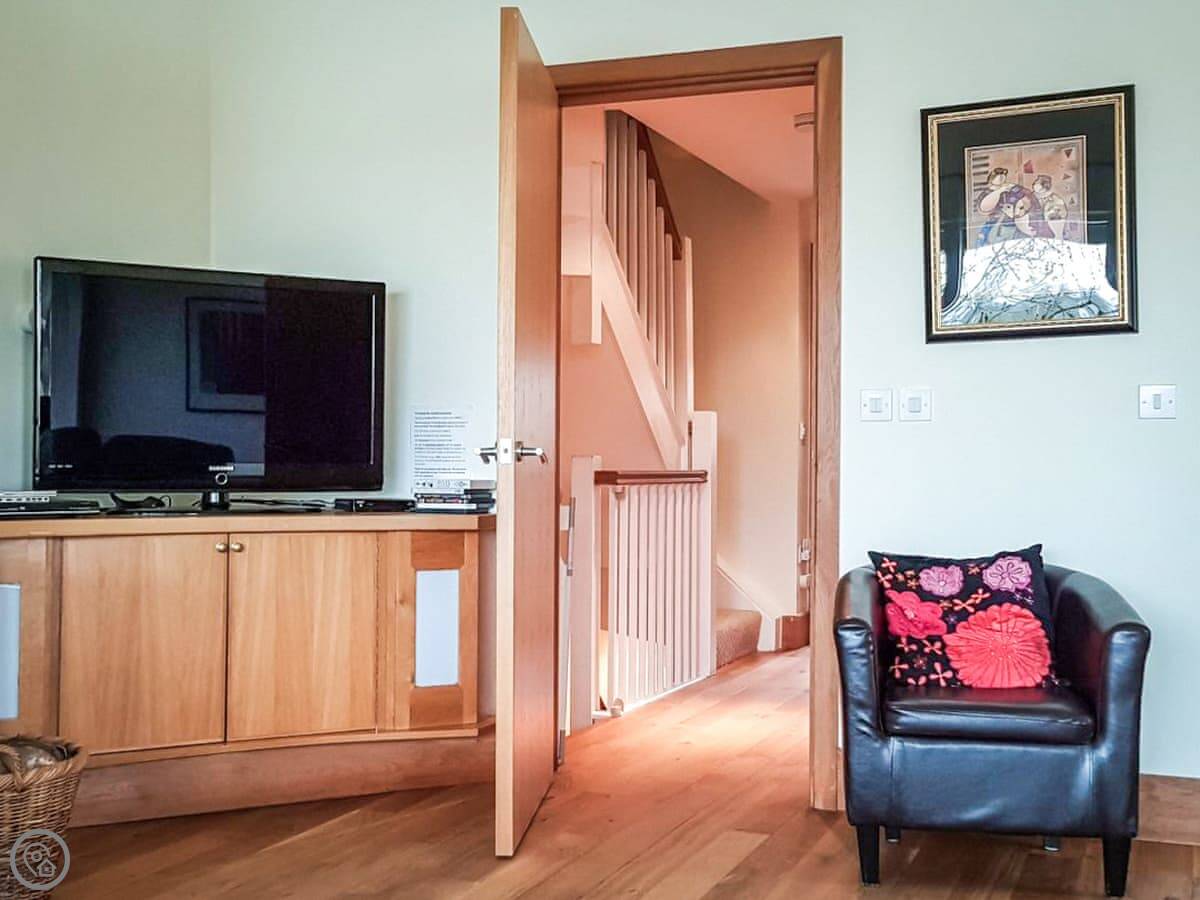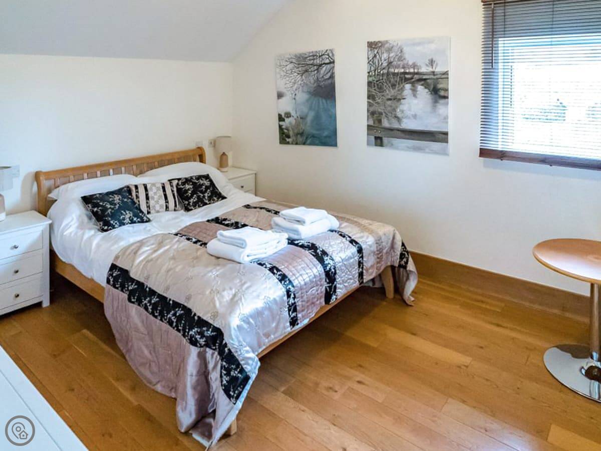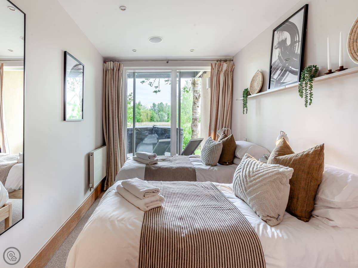 There are two terraces. One on the ground floor by the water, and the balcony upstairs. The wood burner works well for cooler evenings.