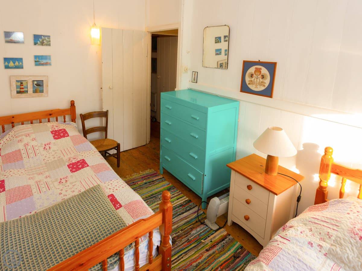 It sleeps four in two bedrooms. There's one bathroom. It's a 3 Star place, so it's clean and has what you need but it's not posh. You can bring one dog.