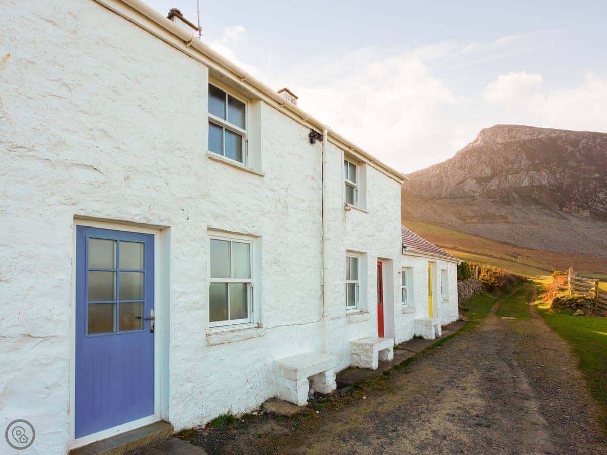 The cottage is called Blue. It's one of three on a bit of National Trust land just outside Trefor. The road stops here, so it's quiet. The view is straight out to sea, no buildings in the way.