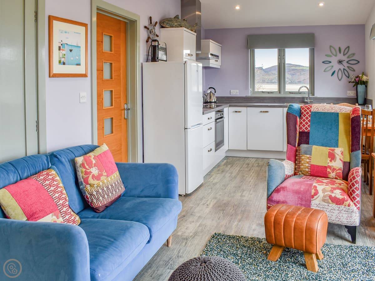 Abergafren Lodge is a small cottage on the water's edge, near Minffordd. It's right on the Dwyryd estuary, so you get the view and the birds. It's detached and quiet.