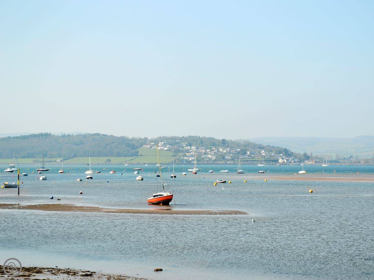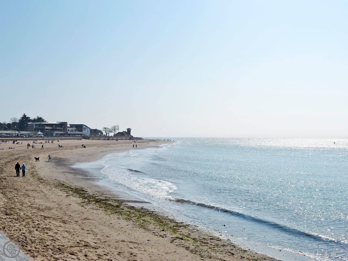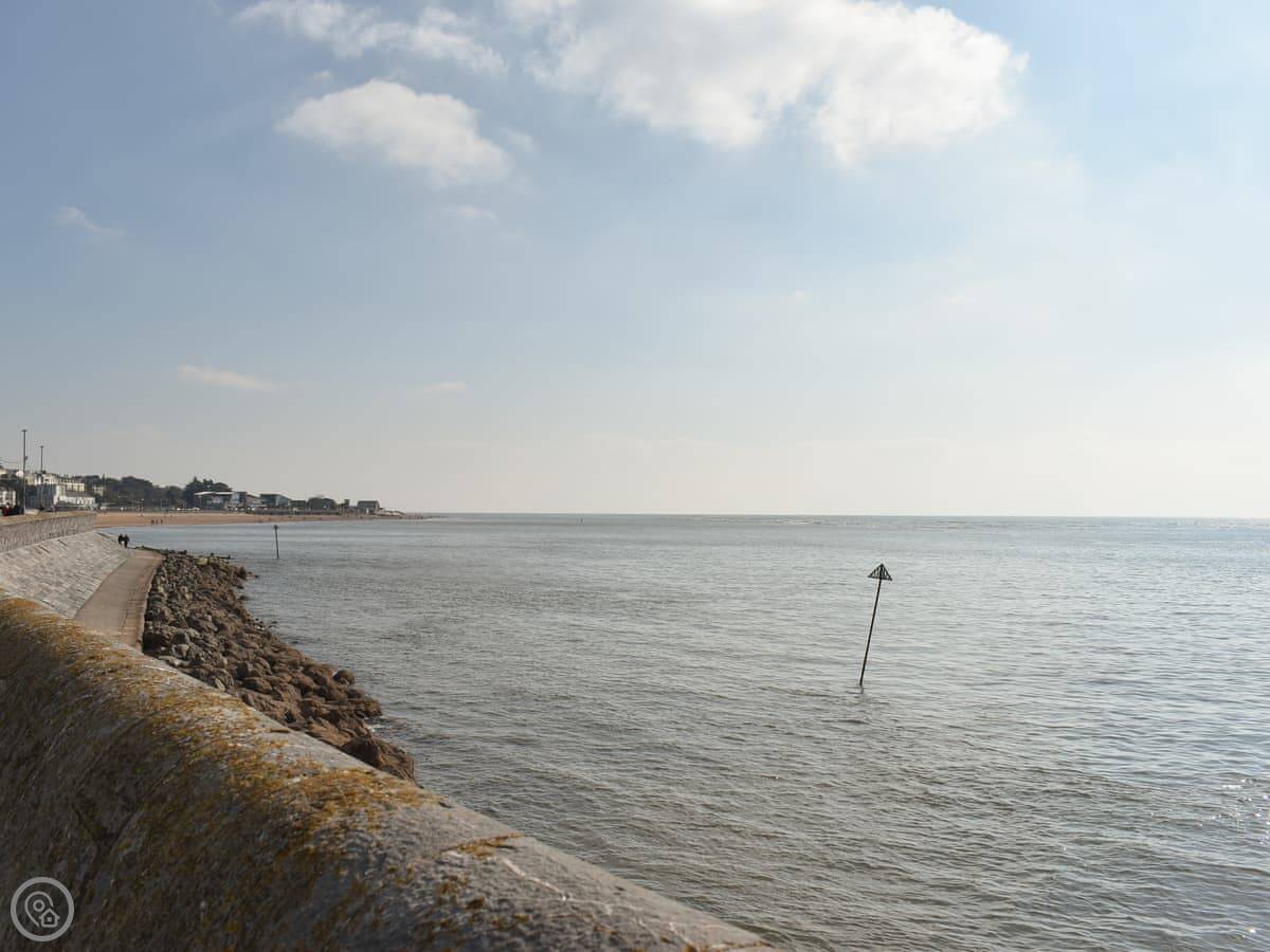 The beach is two miles long. It's sandy. You can walk there in about twenty minutes, or drive in two. The South West Coast Path runs along the seafront. For cycling, the Exe Estuary Trail starts nearby and goes all the way to Topsham.