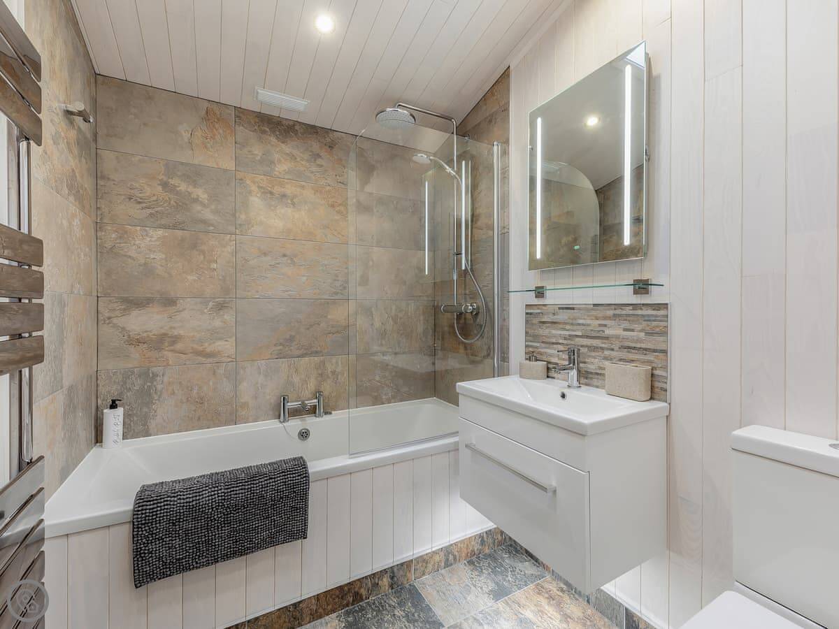 It sleeps four, with two bedrooms. There are two bathrooms, so no one has to queue. It's got a four-star rating, which means it's comfortable and well-equipped.