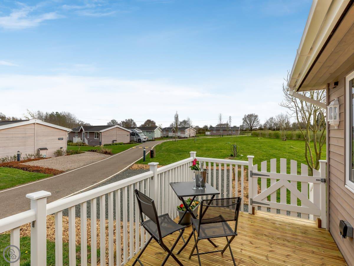 Heather Lodge is a detached, modern lodge on a lake near Willington. It sits right on the water, so you'll have ducks and swans coming up to the deck.