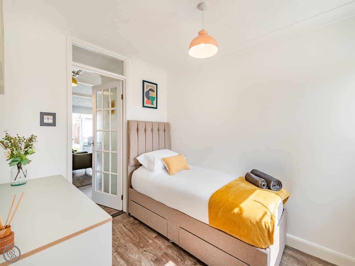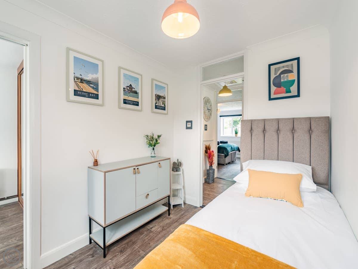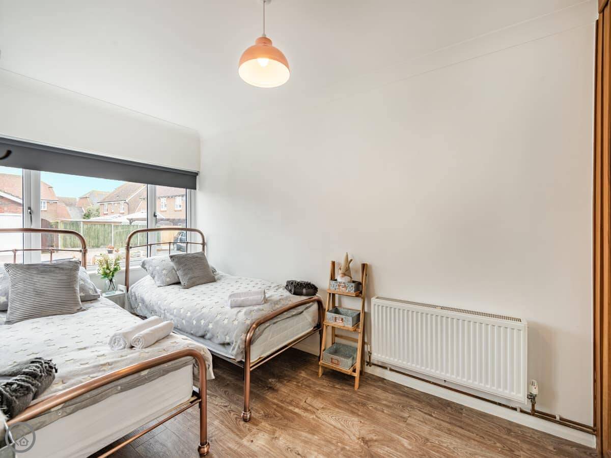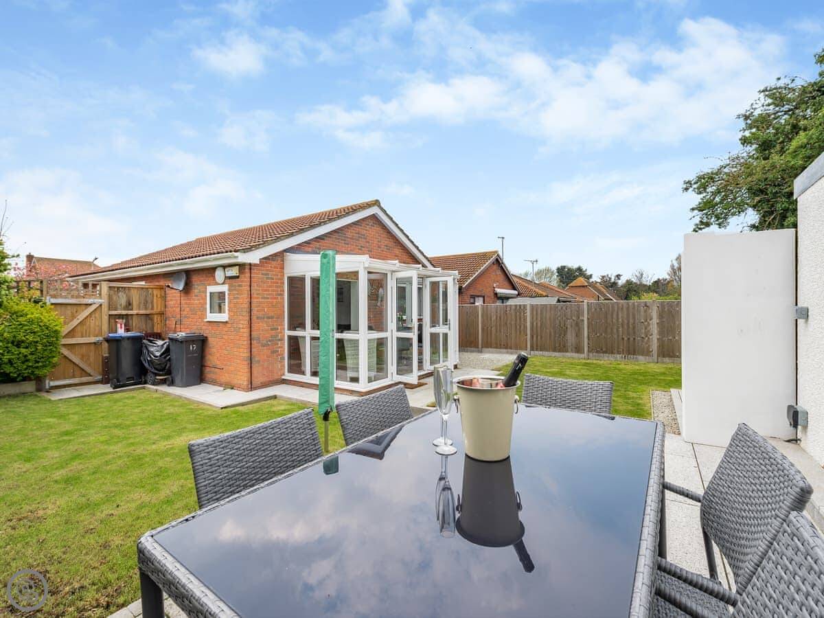 The Beach Bungalow is in Herne Bay. It's a detached bungalow on a corner plot, so the garden wraps around it. You get pretty good sun.