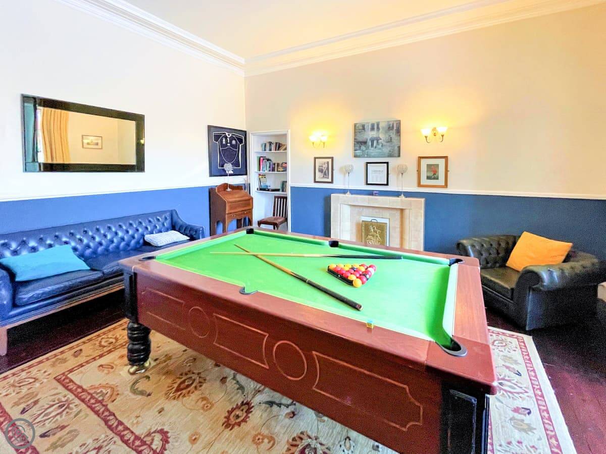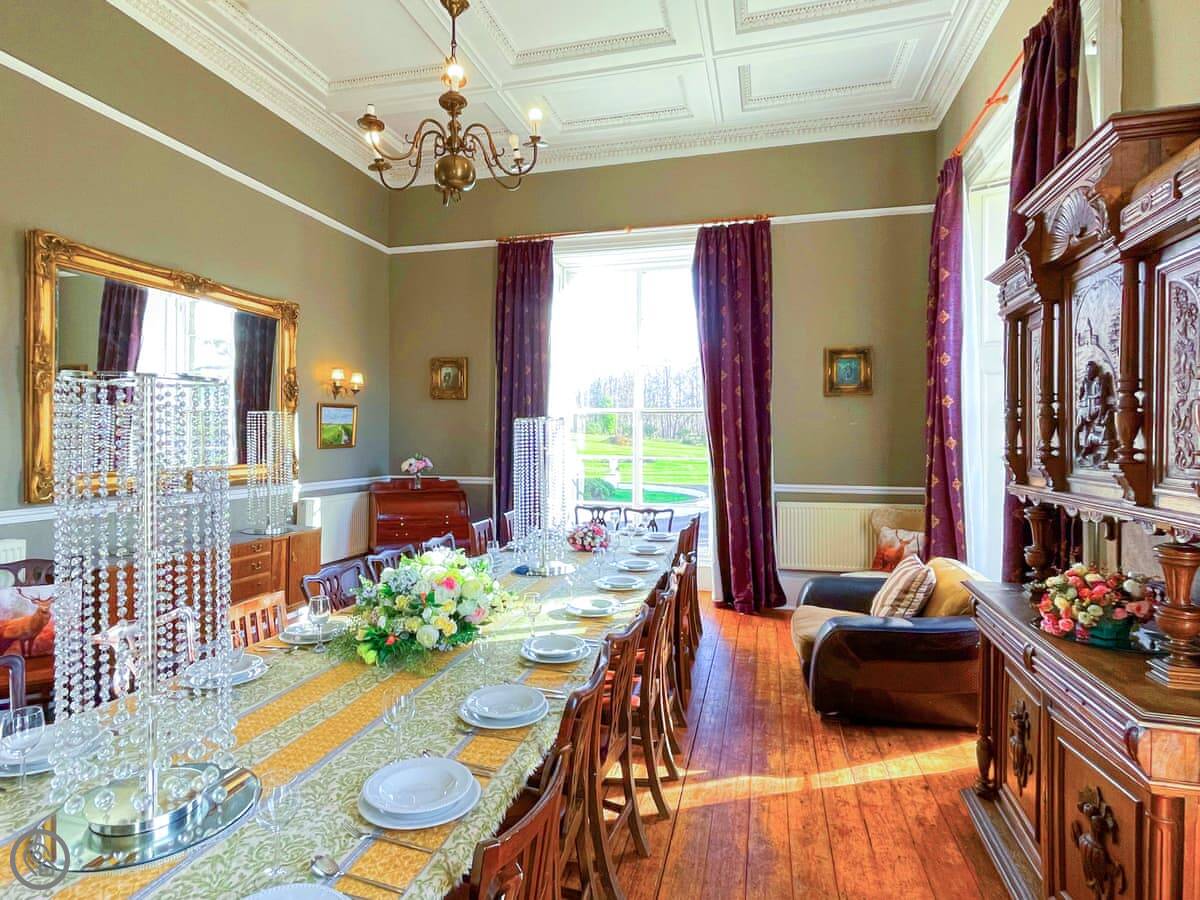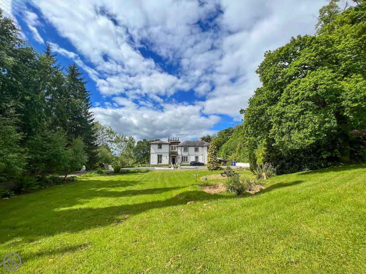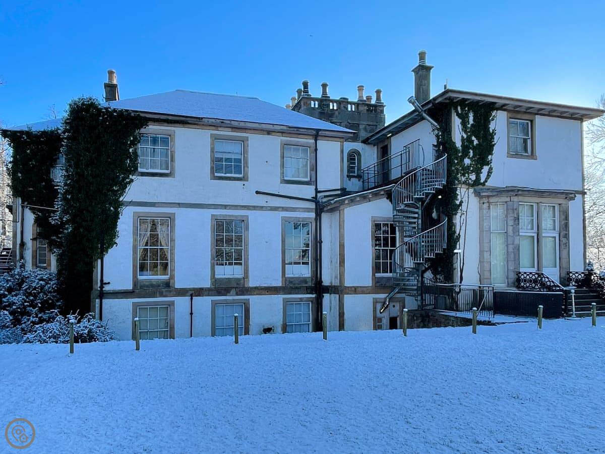 The Mansion House is in Gorebridge, Midlothian. It's about nine miles from Edinburgh city centre. It's a very big house, sleeps up to 26 people. Ten bedrooms, nine bathrooms.