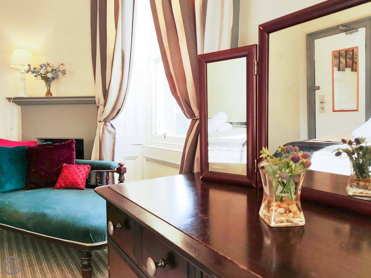 Most bedrooms are on the top floor. Seven have en-suites, one has a private bathroom close by. There are two more bedrooms on the ground floor. The place is rated 4 Star. It's clean, well-furnished, but it's a period property. Expect the character that comes with that.