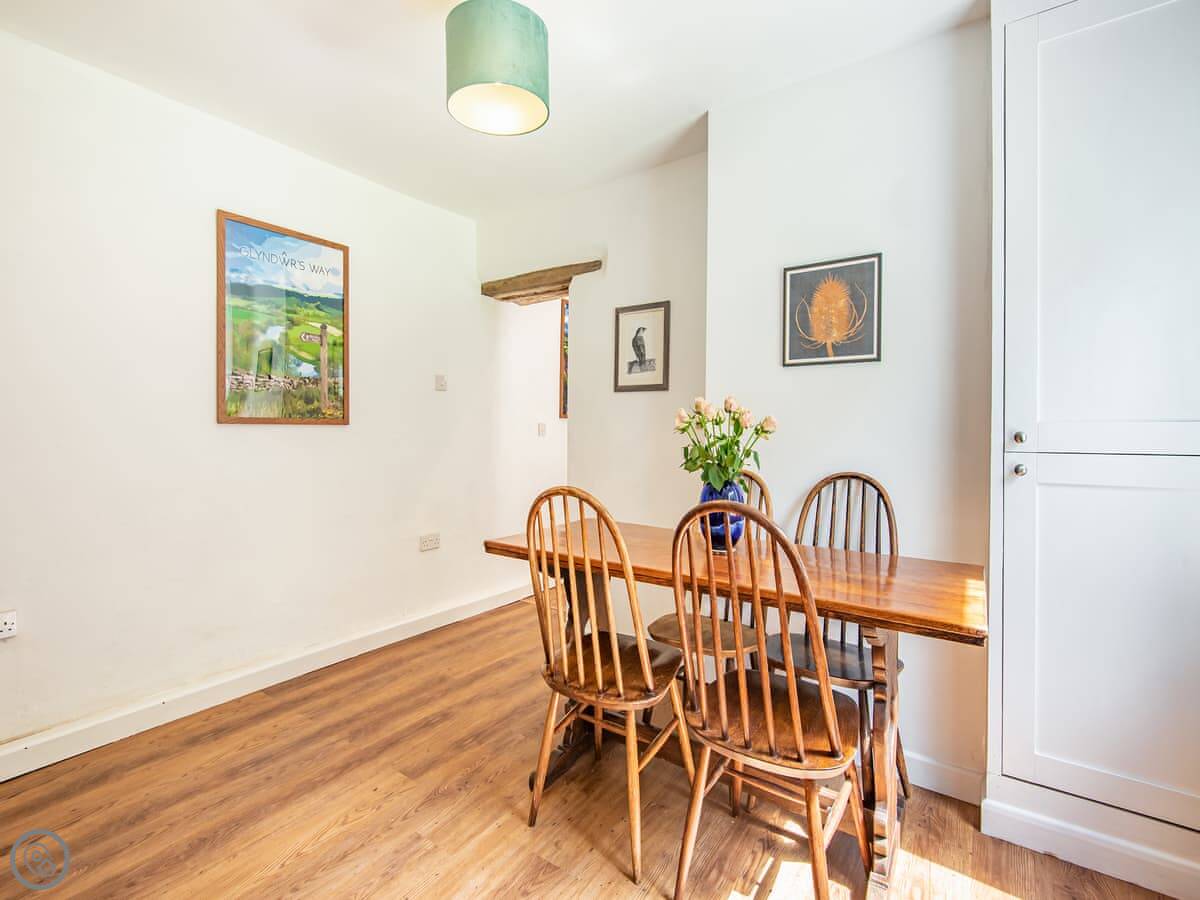 Jackdaw Cottage is in Knighton. It's a stone cottage, about two hundred years old. It's detached and sits on the Glyndwr's Way footpath, on the edge of town. You can walk into the centre in a few minutes.