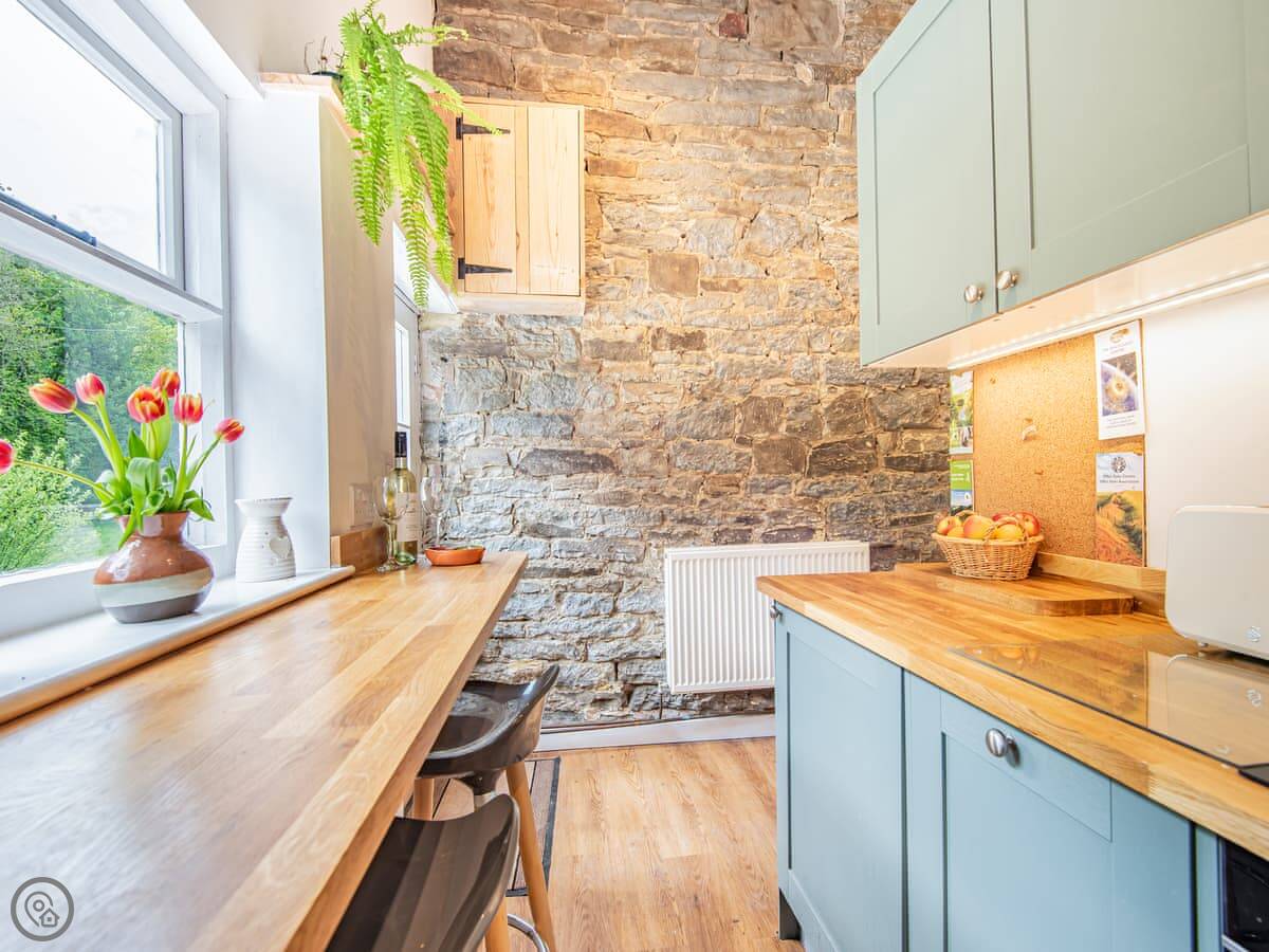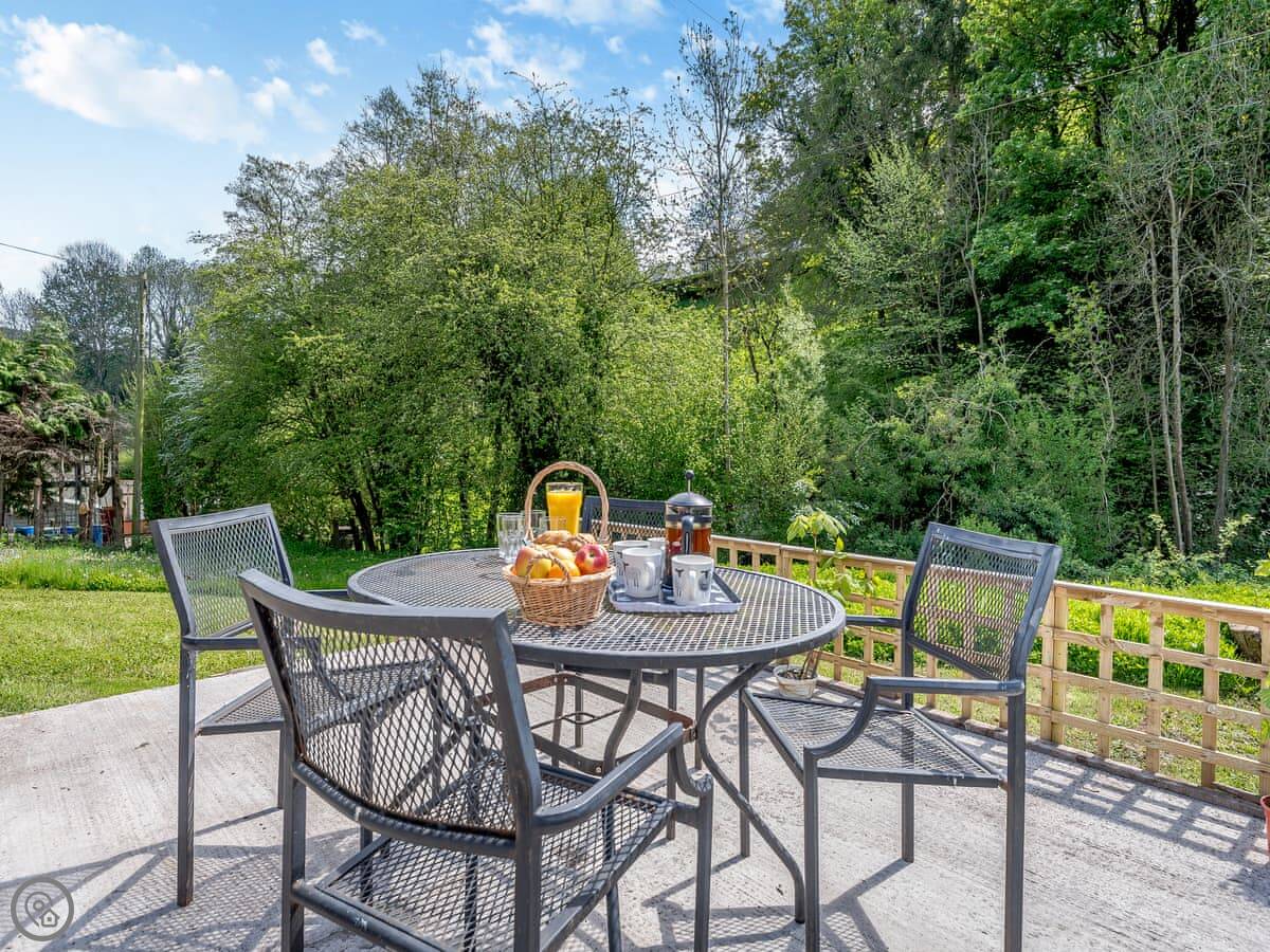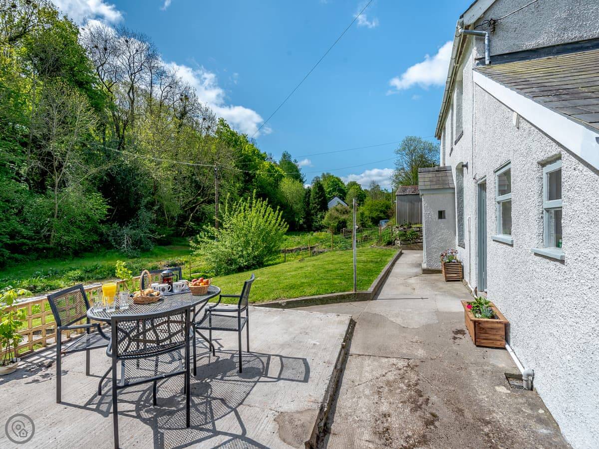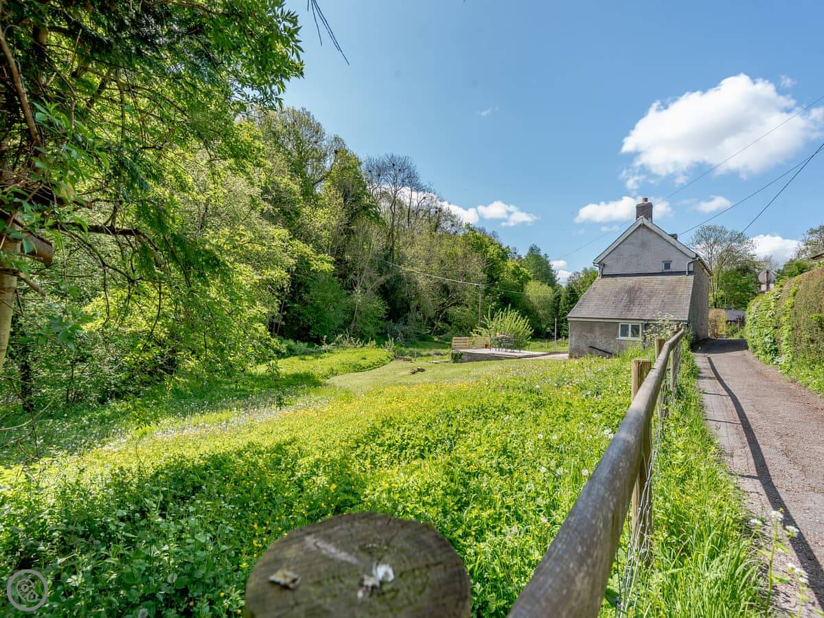 The main thing is the garden. It's large, enclosed, and south-facing. It looks out over a wooded valley called the Cwm. You get private access down to the brook at the bottom. It's a good spot to sit out. The garden is secure, so it's fine for dogs and kids.