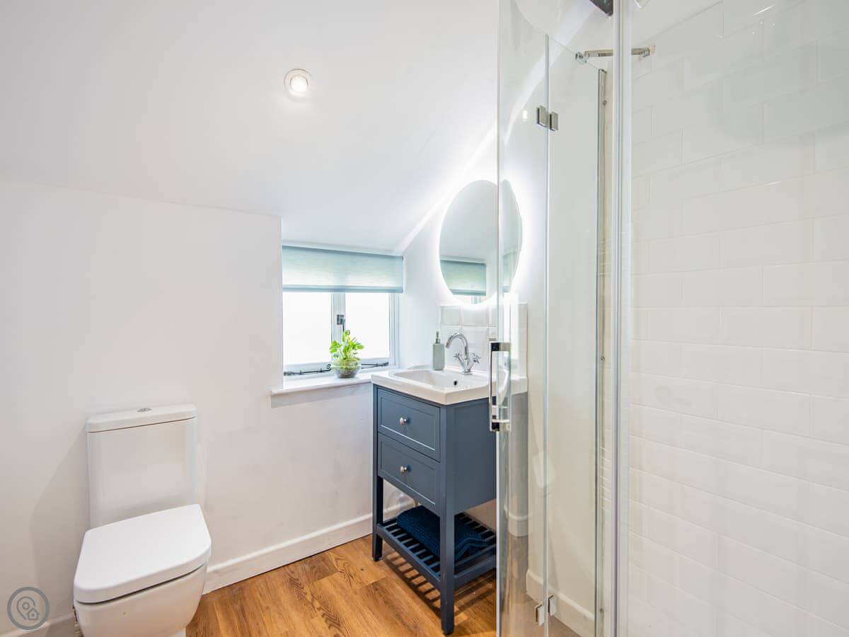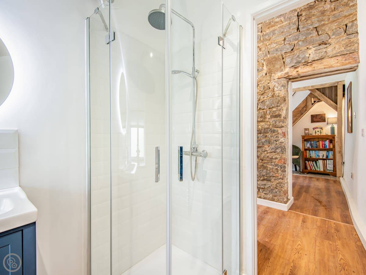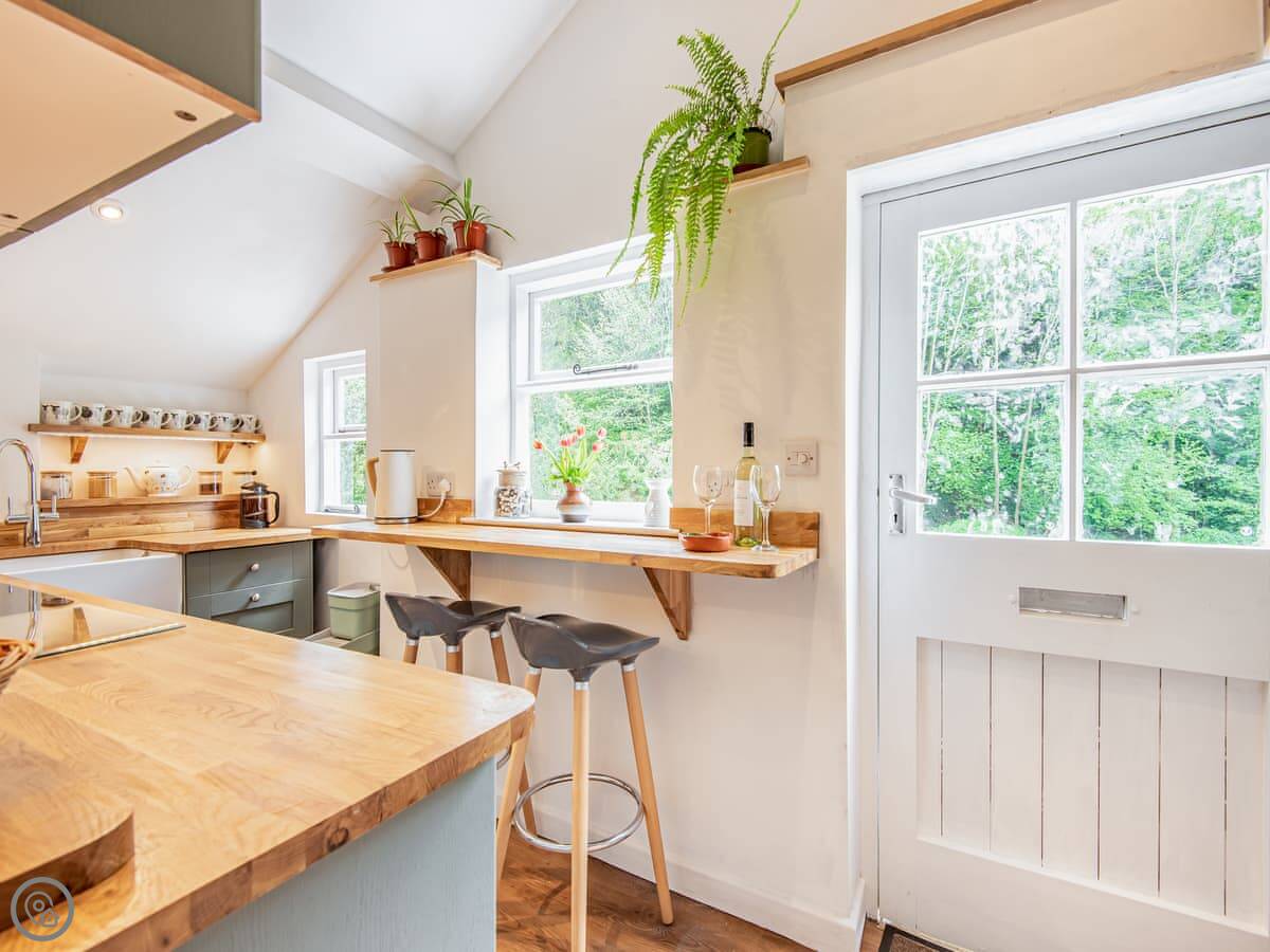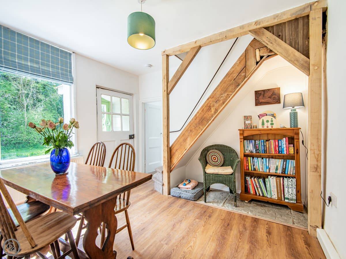 The main thing is the garden. It's large, enclosed, and south-facing. It looks out over a wooded valley called the Cwm. You get private access down to the brook at the bottom. It's a good spot to sit out. The garden is secure, so it's fine for dogs and kids.