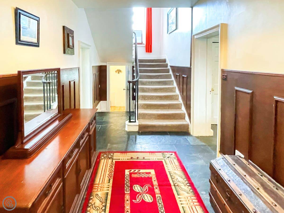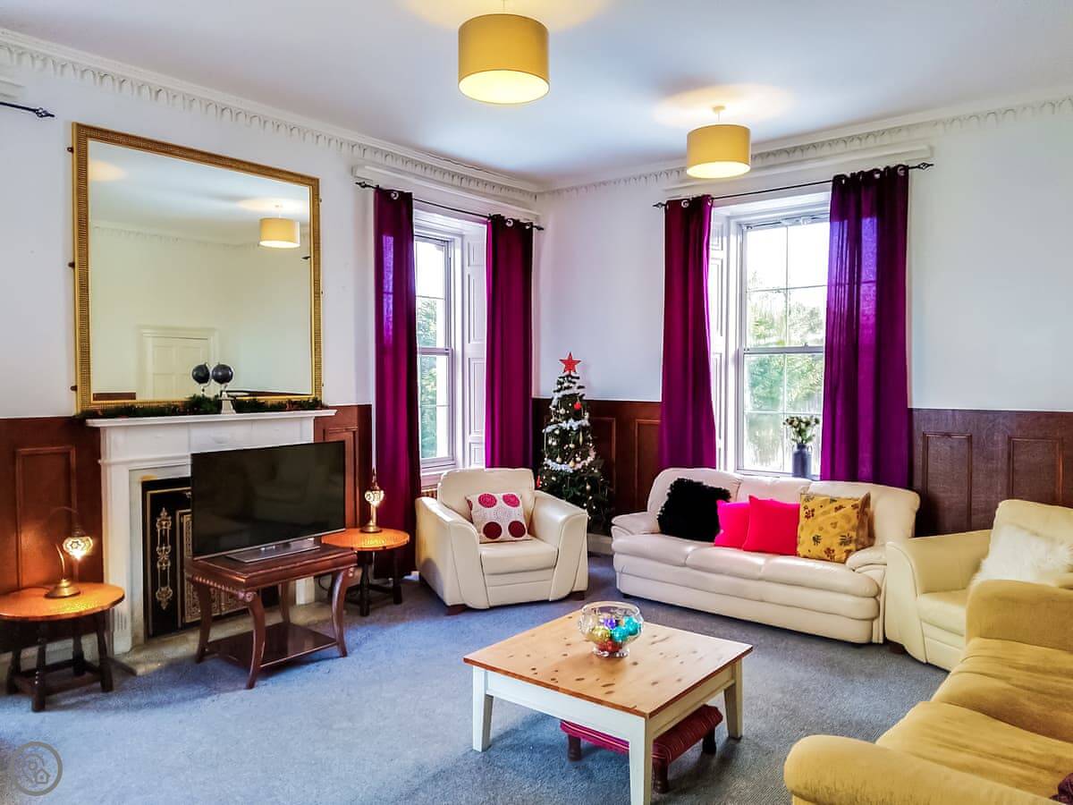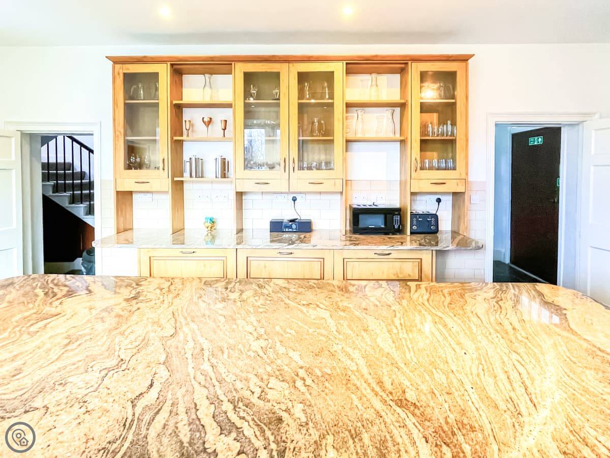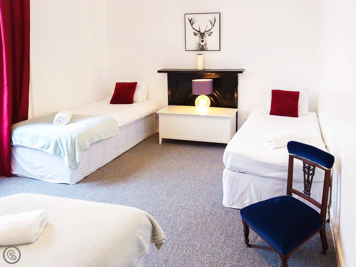 It sleeps up to twenty one people. There are nine bedrooms and five bathrooms, split between the main house and an annexe next to it. It's got a 4 Star rating. It's comfortable and well equipped, not a show home.