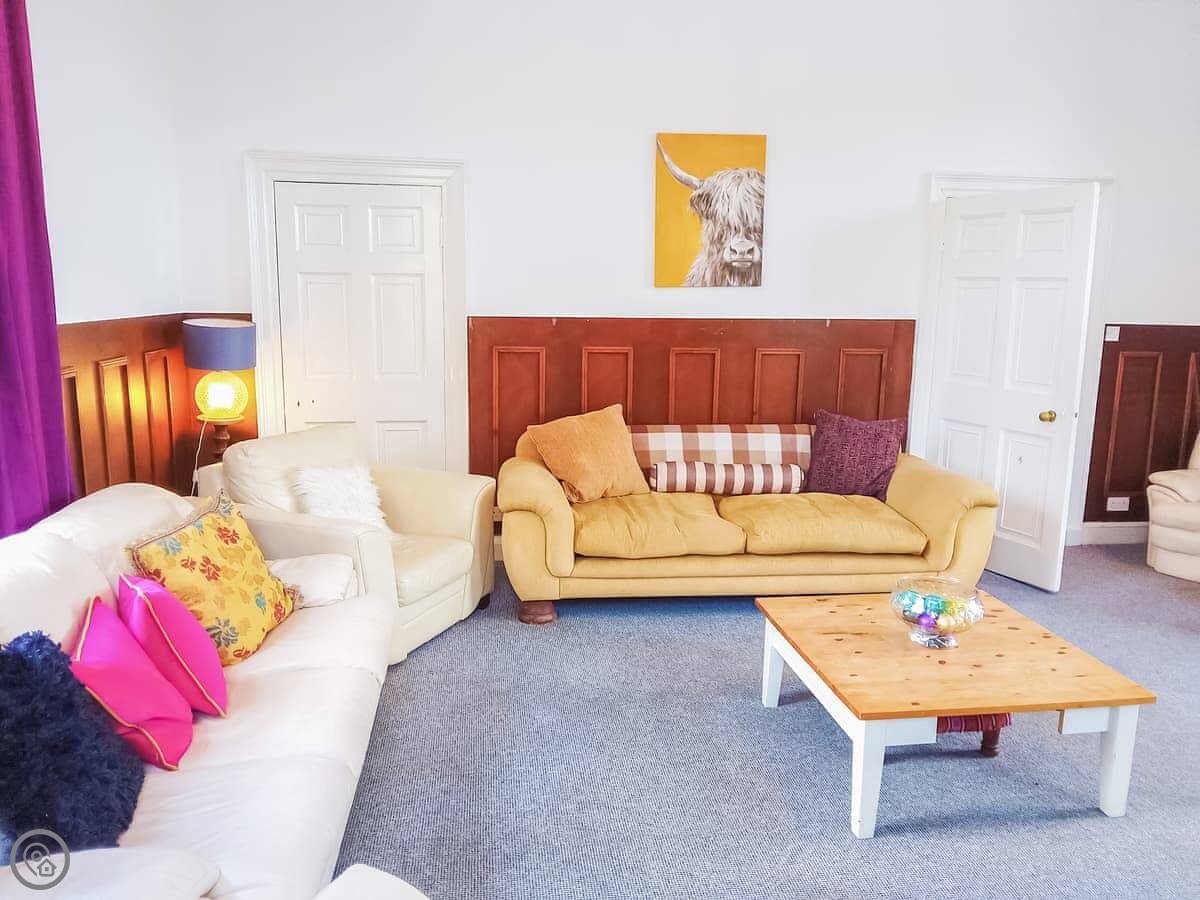 You're at the foot of the Pentland Hills here, so the views are all fields and hills. It's very quiet. It works well for big family groups or friends wanting a place to themselves, away from town.