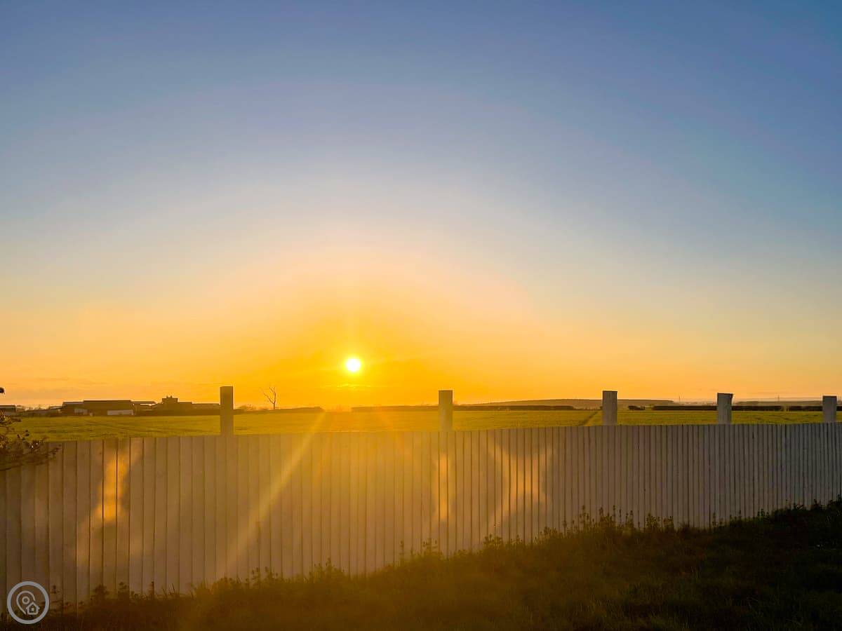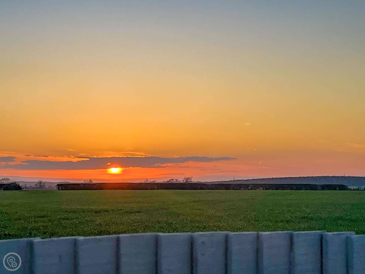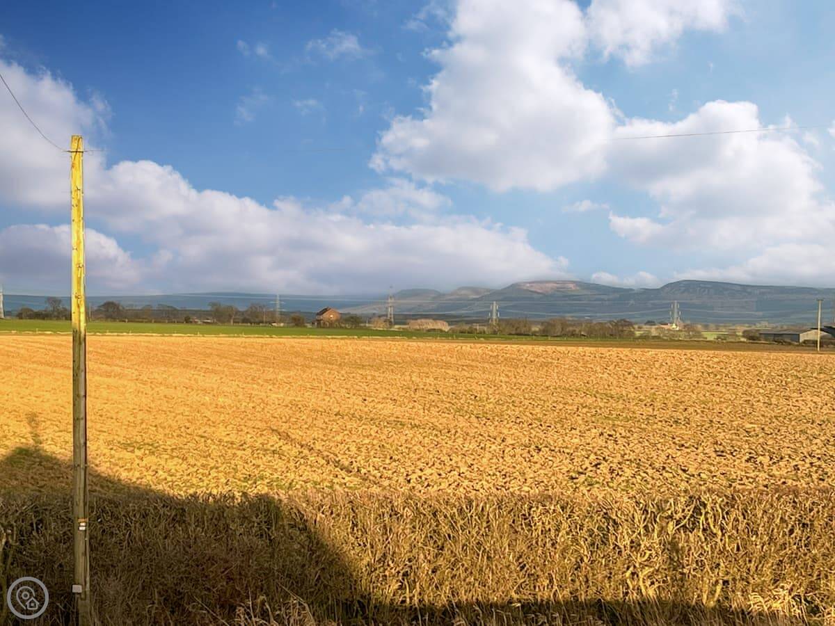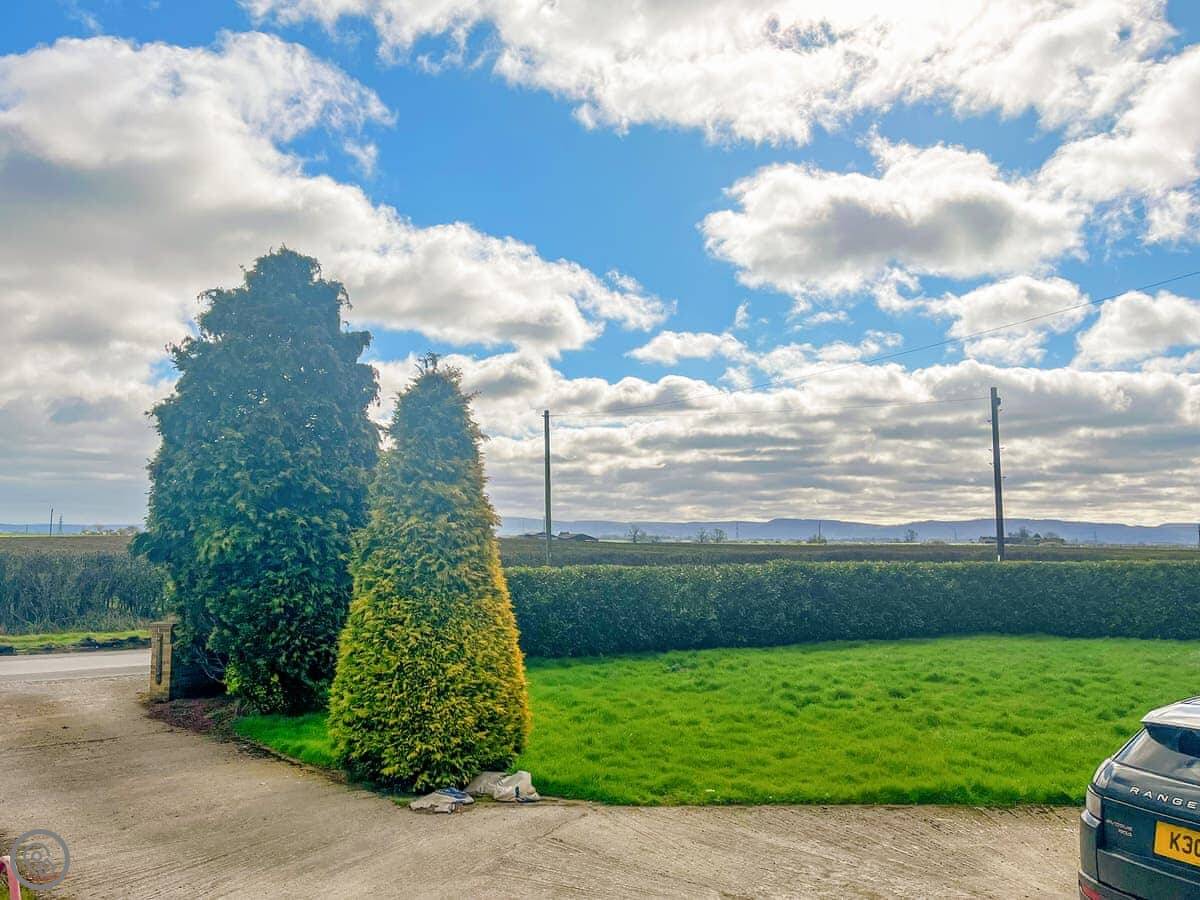 The cottage looks out over fields. The garden has a patio with a table and chairs, and a BBQ. There's also a hot tub at the bottom of the garden. The views are across Yorkshire farmland.
