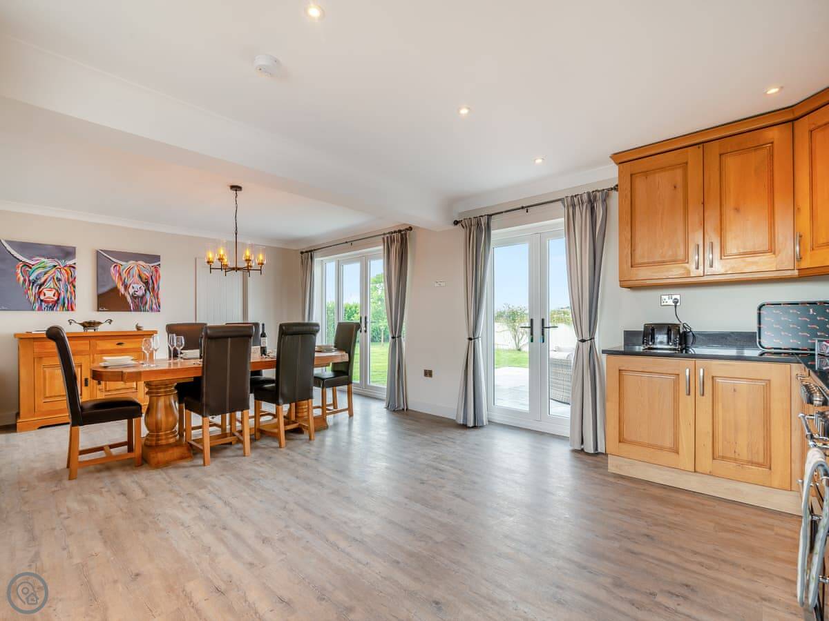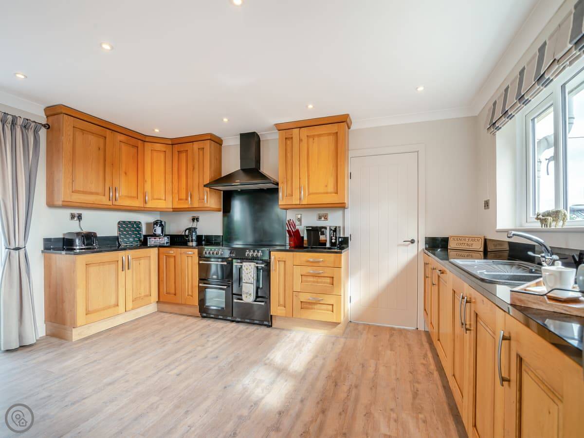 Inside, there's a wood burner in the living room. The kitchen has a dishwasher and a washing machine. Bedding and towels are included. We can provide a cot and highchair if you need them.