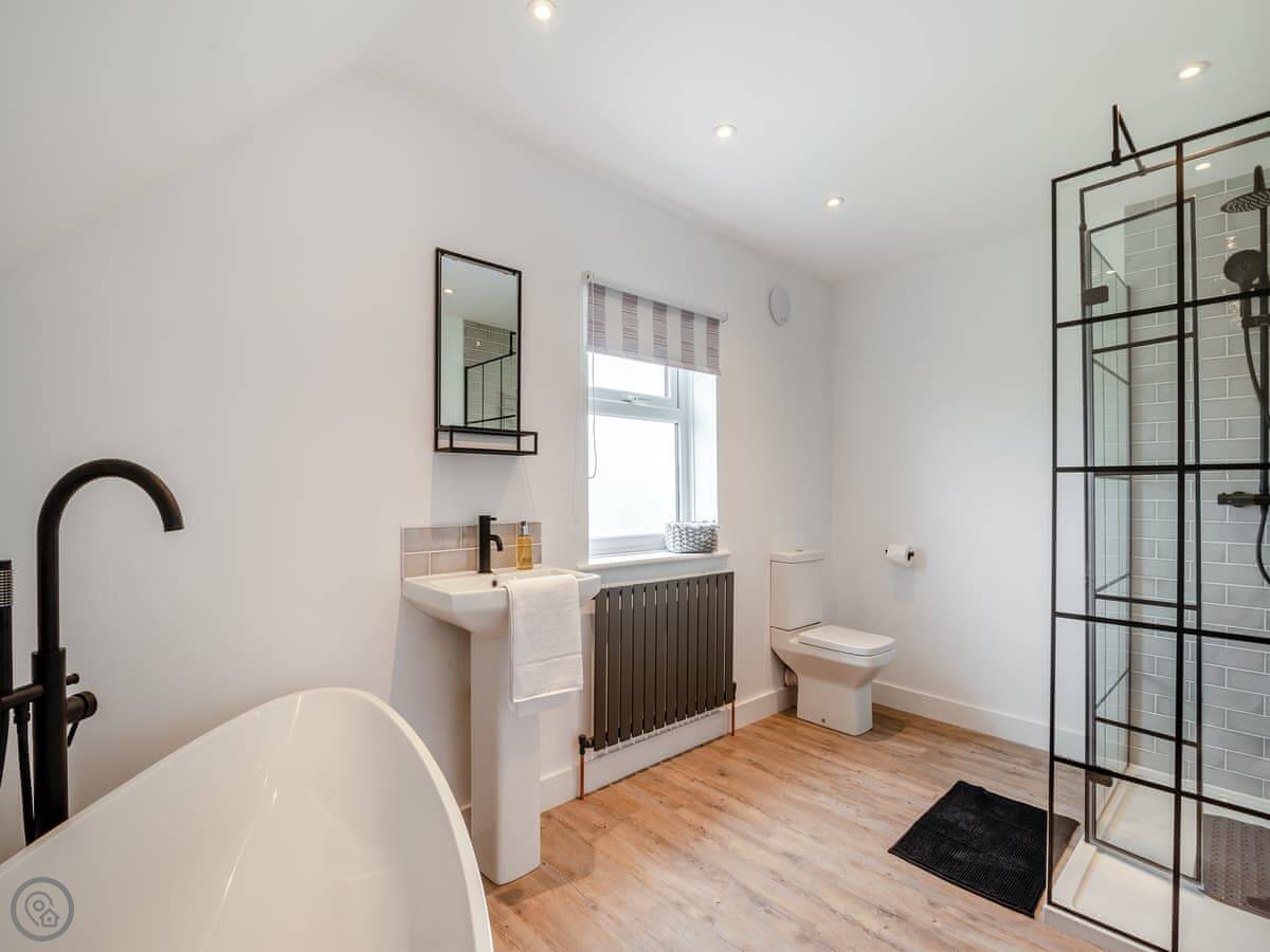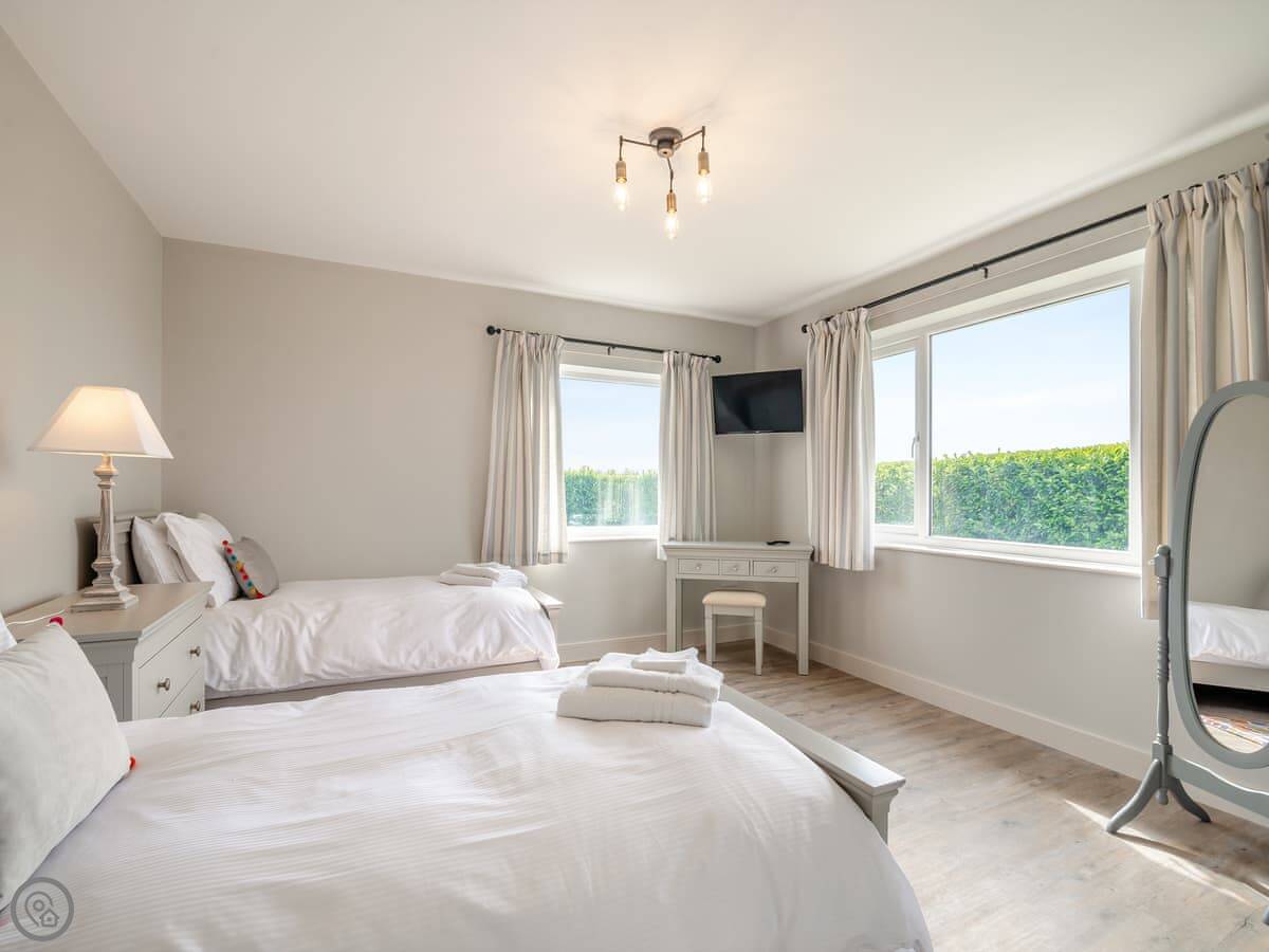 Manor Farm Cottage is ours. It's a detached cottage on the edge of our working farm. It sleeps six across three bedrooms. There are two bathrooms, one is an ensuite to the main bedroom.