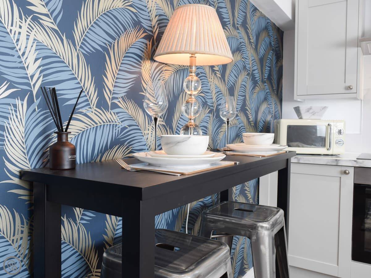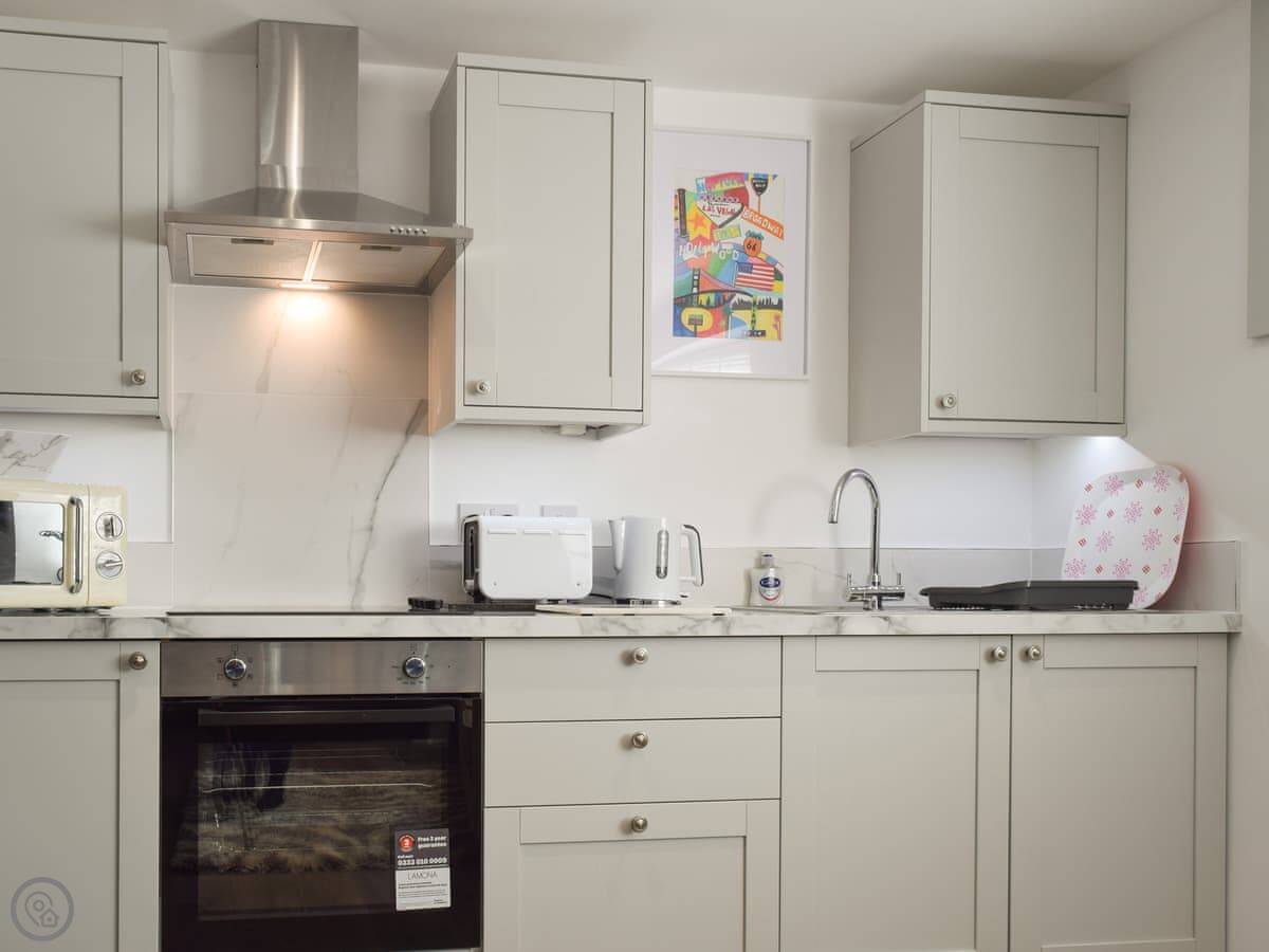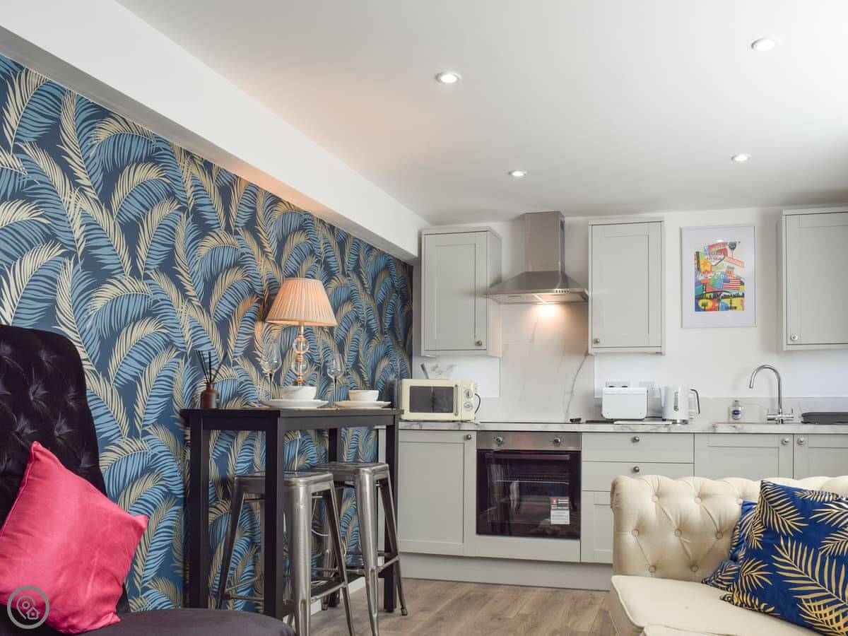 Beautifully presented, boutique-style accommodation ideal for both short getaways or longer breaks, and is decorated for Christmas breaks. This very comfortable one-bedroom property is set within the grounds of the owner’s family home where you may even meet the friendly family dog. On the ground floor, the open plan kitchen and living room gives you space to relax after a day exploring, with a choice to cook a meal in or visit one of the local takeaways, pubs or restaurants just a short walk away. Upstairs you are met with a lovely double bedroom with access to the en-suite shower room. You can enjoy an evening tipple in the private courtyard style garden which enjoys the sunshine on a bright day.