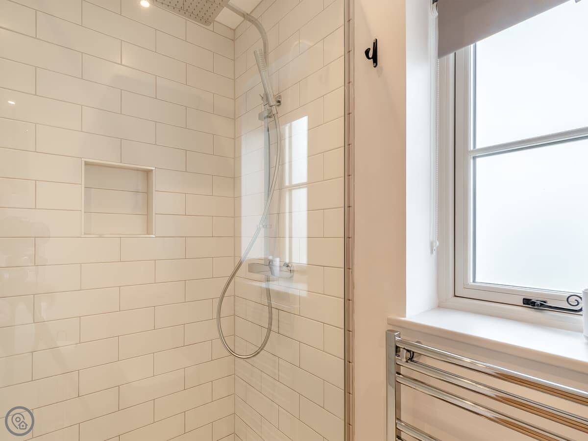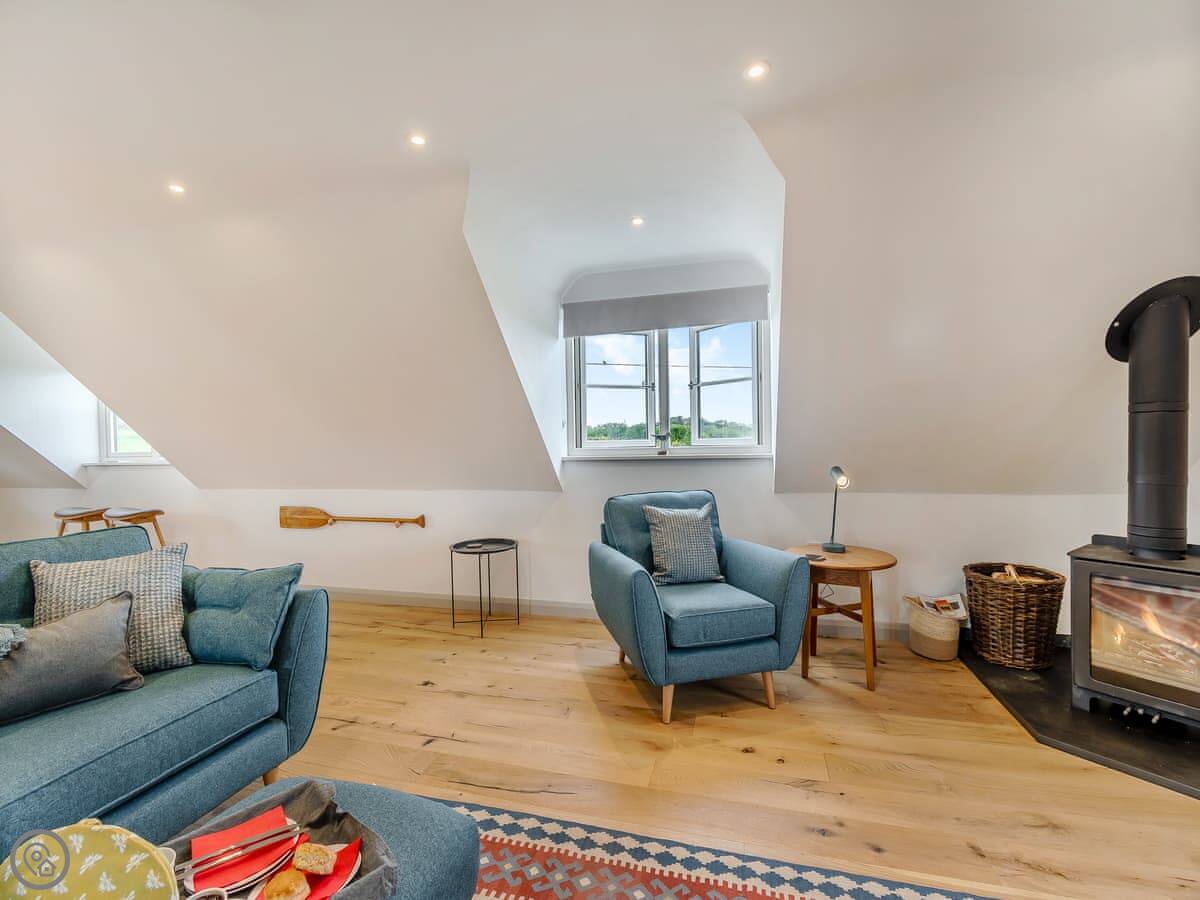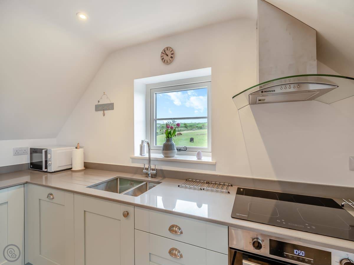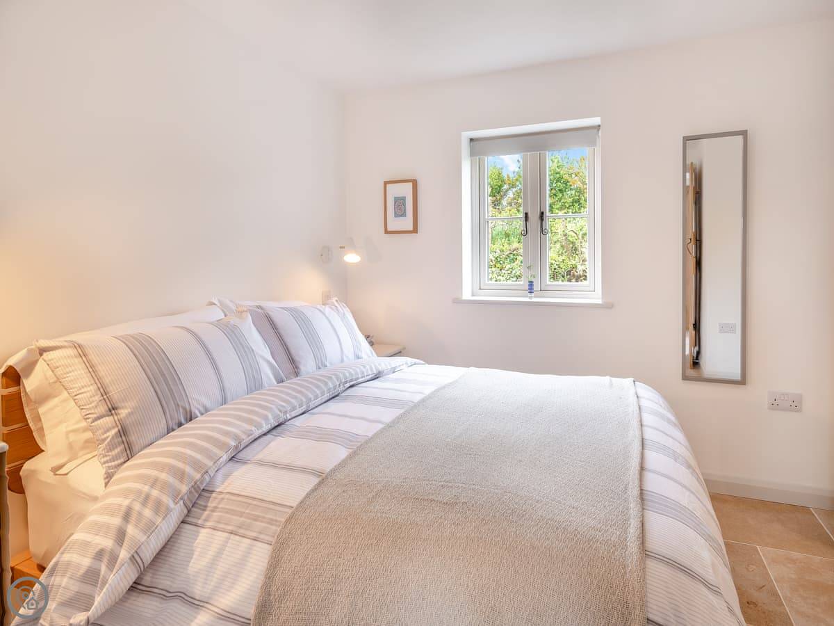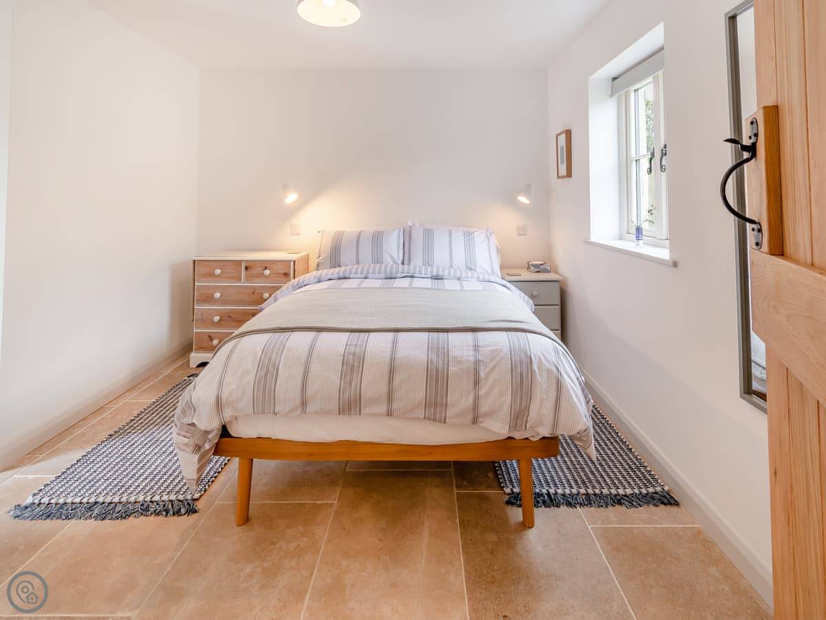 It sleeps four. Two bedrooms, both downstairs, and two bathrooms. One is an en-suite to the main bedroom. Everything's been done to a high standard, it's a 5 Star place. It's got underfloor heating and a wood burner.