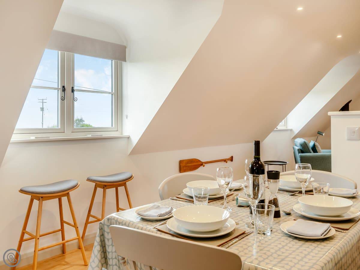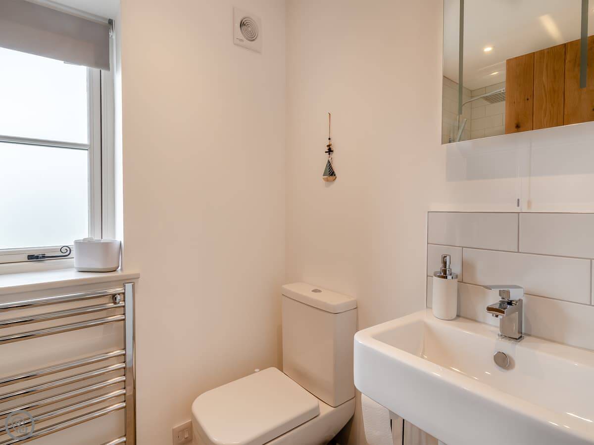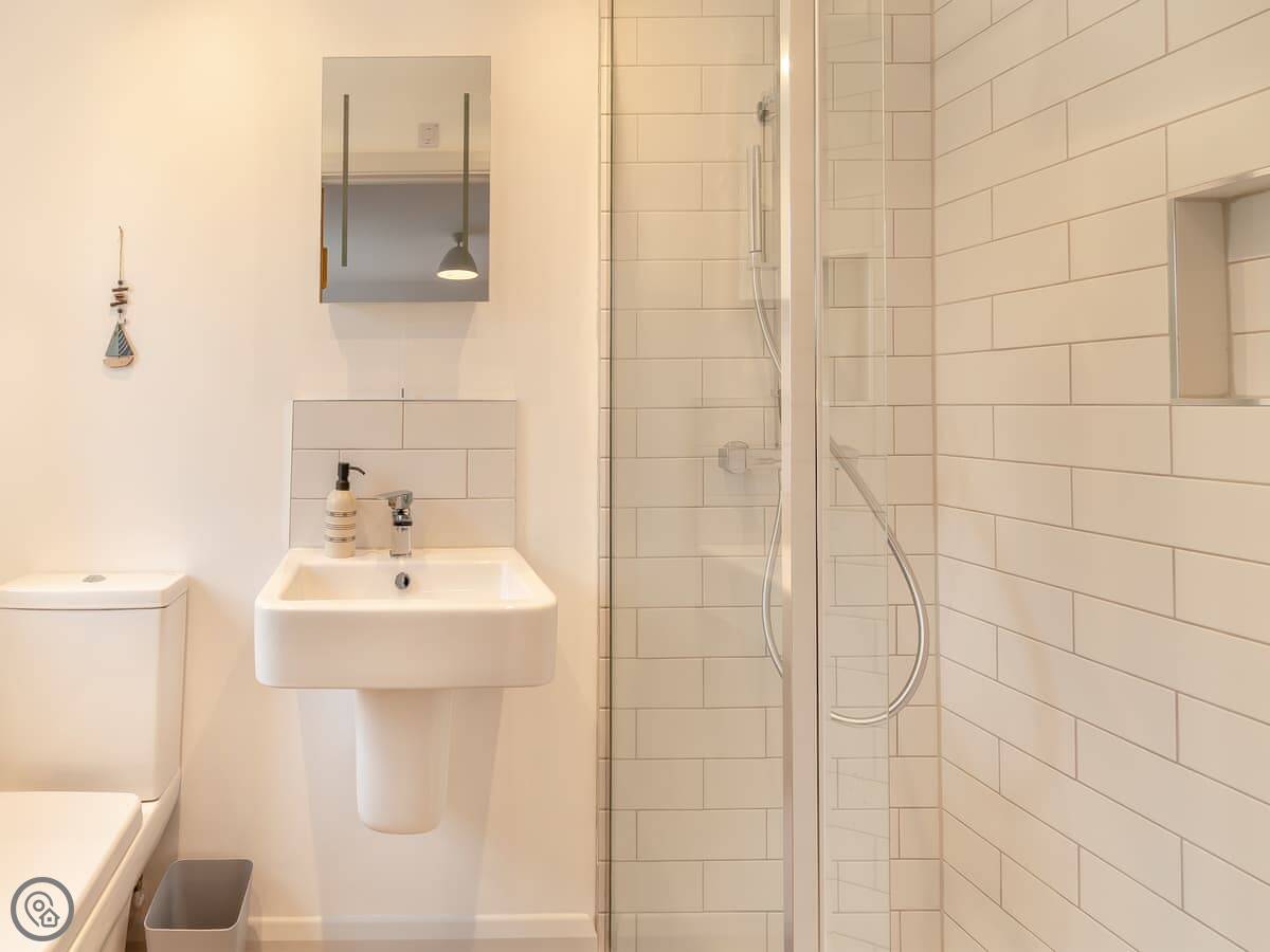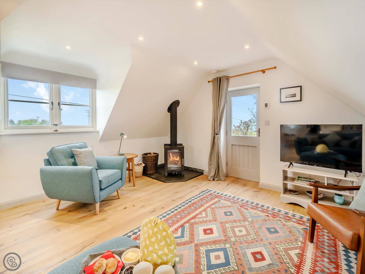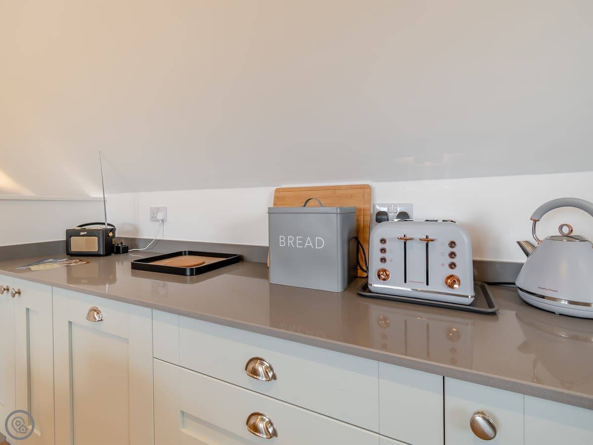 It sleeps four. Two bedrooms, both downstairs, and two bathrooms. One is an en-suite to the main bedroom. Everything's been done to a high standard, it's a 5 Star place. It's got underfloor heating and a wood burner.