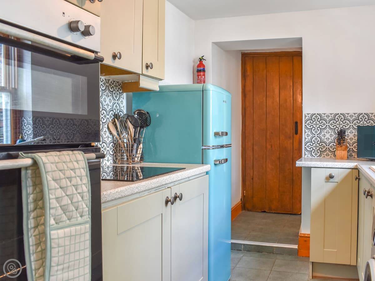 Inside, it's got what you'd expect: a washing machine, dishwasher, WiFi, TV. Bedding and towels are included. There's a small patio garden out the back. Sorry, no pets.