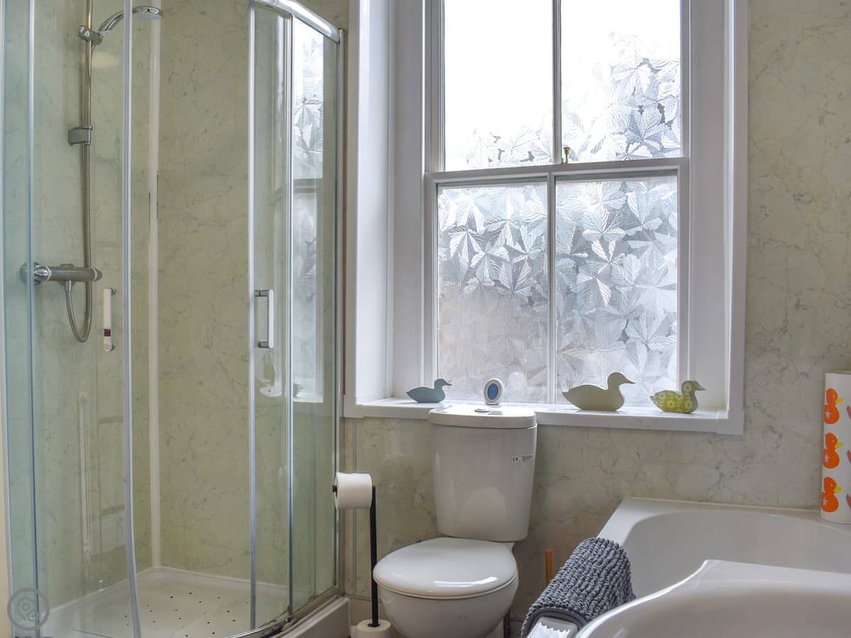 It sleeps eight in four bedrooms. There are three bathrooms, which is handy for a group that size. It's a 3 Star place, so it's clean and functional more than luxurious. It's over three floors, so there are a fair few stairs.