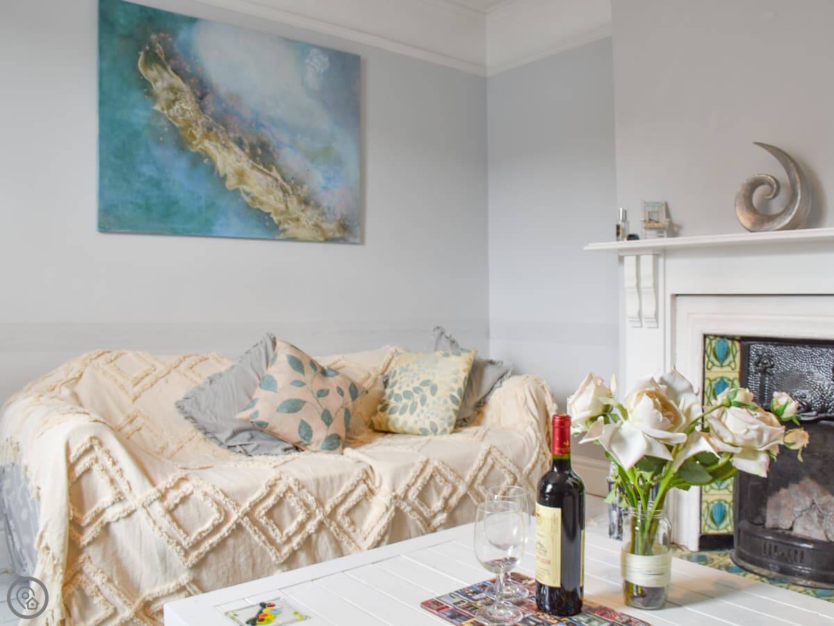 It's a 4 Star rated cottage, which means it's comfortable and well looked after. It sleeps five, in three bedrooms, and there's one bathroom. There's a woodburning stove. The stairs are steep and the walls are a bit curved in places because it's an old building.