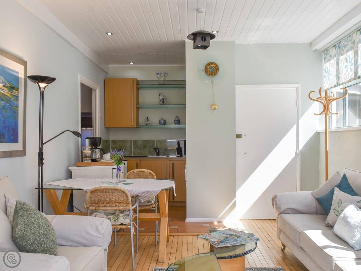 It's a 4 Star place, so it's comfortable and has everything you need. The main room is open plan, kitchen at one end, seating area at the other. It's a bright, social space.