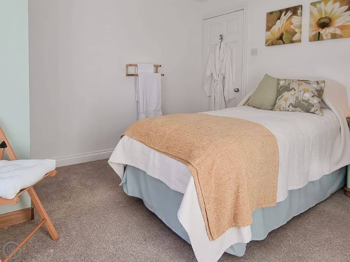 The bathroom is on the ground floor, which has plenty of storage and complimentary toiletries. A child booster step and toilet seat for the little ones in your party are also available. Up the staircase there is a toughened glass balustrade, and a staircase gate is available on request. There are three bedrooms, each with ample storage, fluffy white towels, dressing gowns and slippers for your comfort. Travel cot is available on request.
