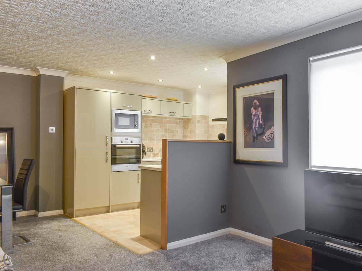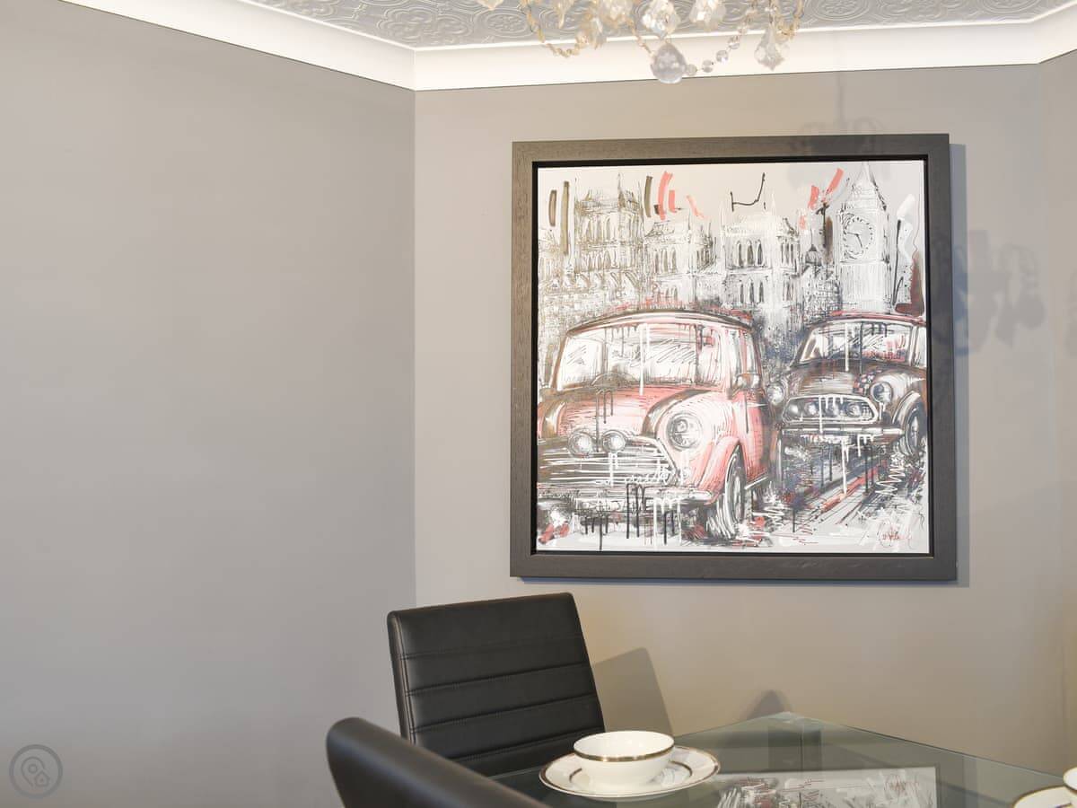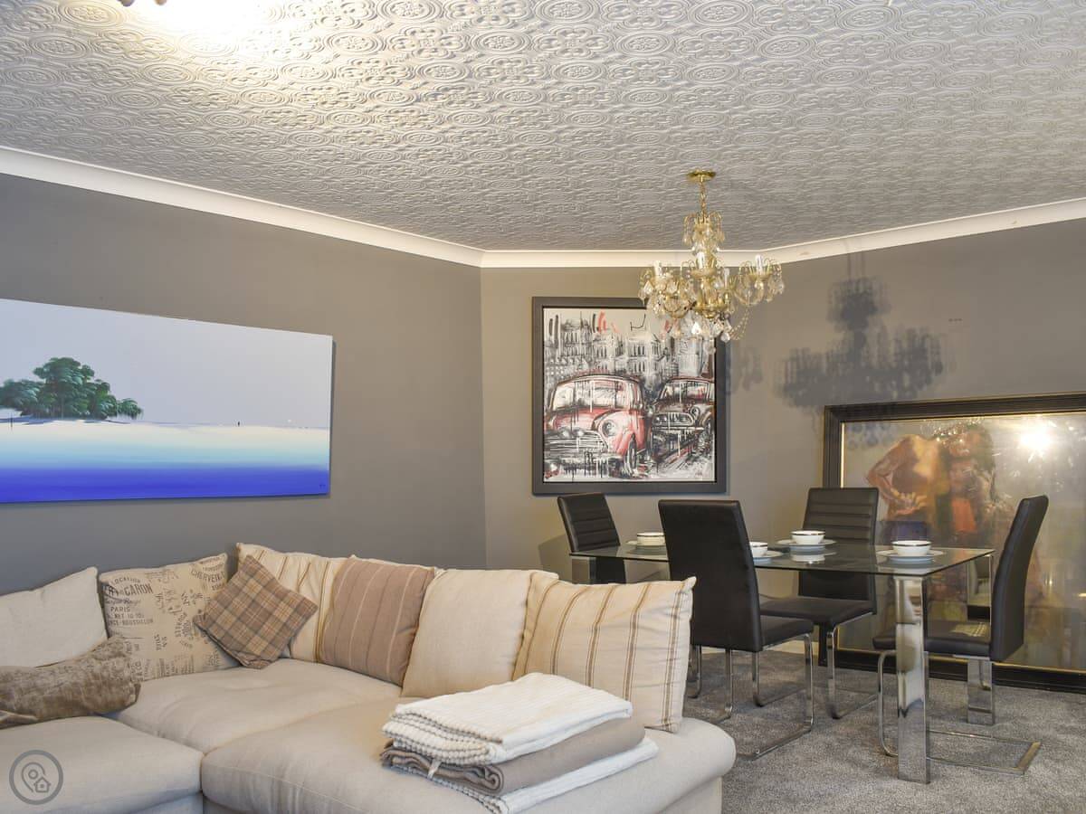 Upon entering the apartment, you will access the spacious living/dining room with beautiful artwork adorning the walls. Put your feet up after a long day exploring the bay and eating ice creams on the sumptuous sofas whilst chatting with your family and friends as a delicious meal is prepared in the open plan kitchen, perfect for entertaining or watching over family games. Fuel up for a day on the beach at the dining table or venture to Boston Tea Rooms on the ground floor below the apartment for a special treat.