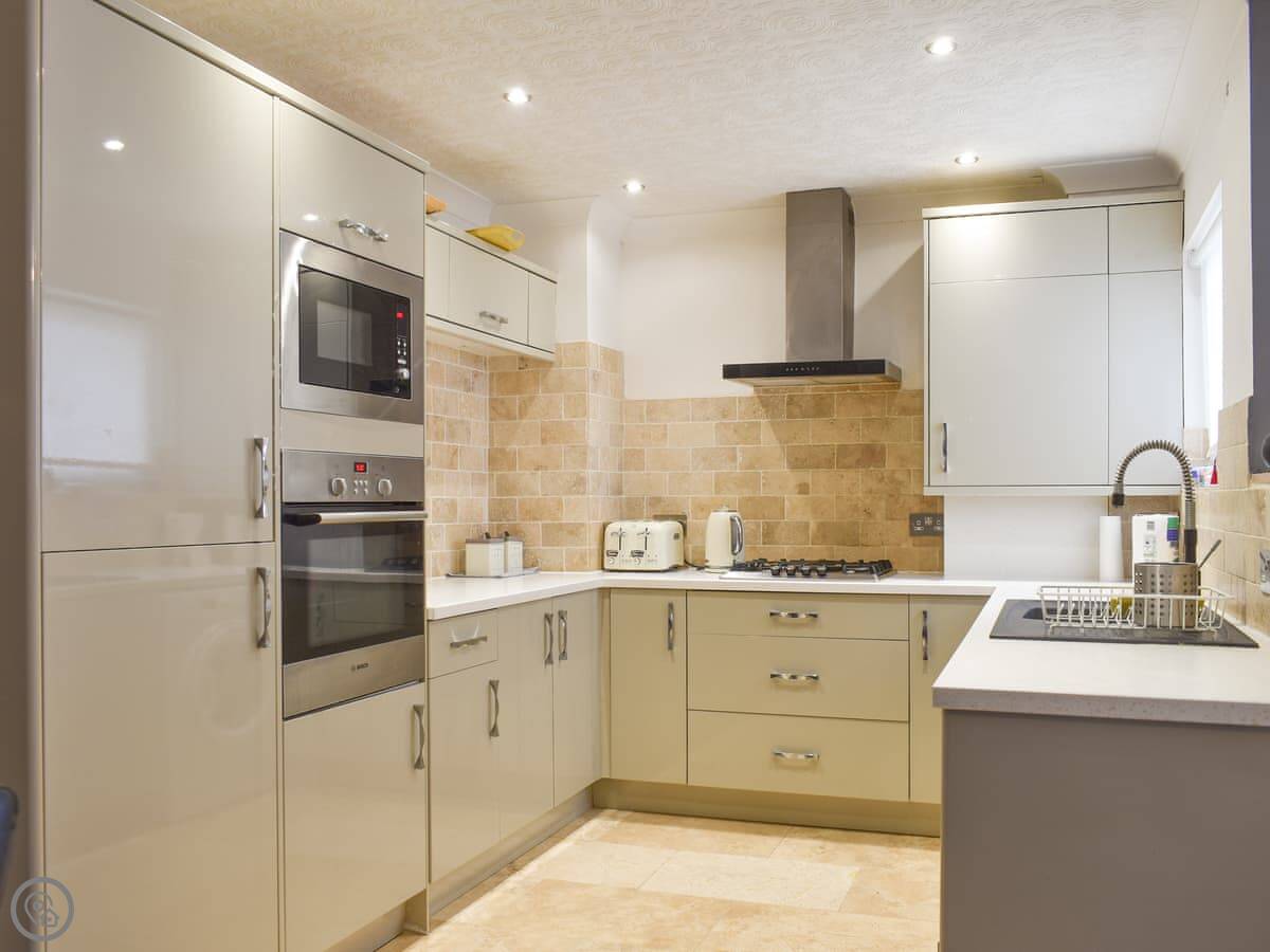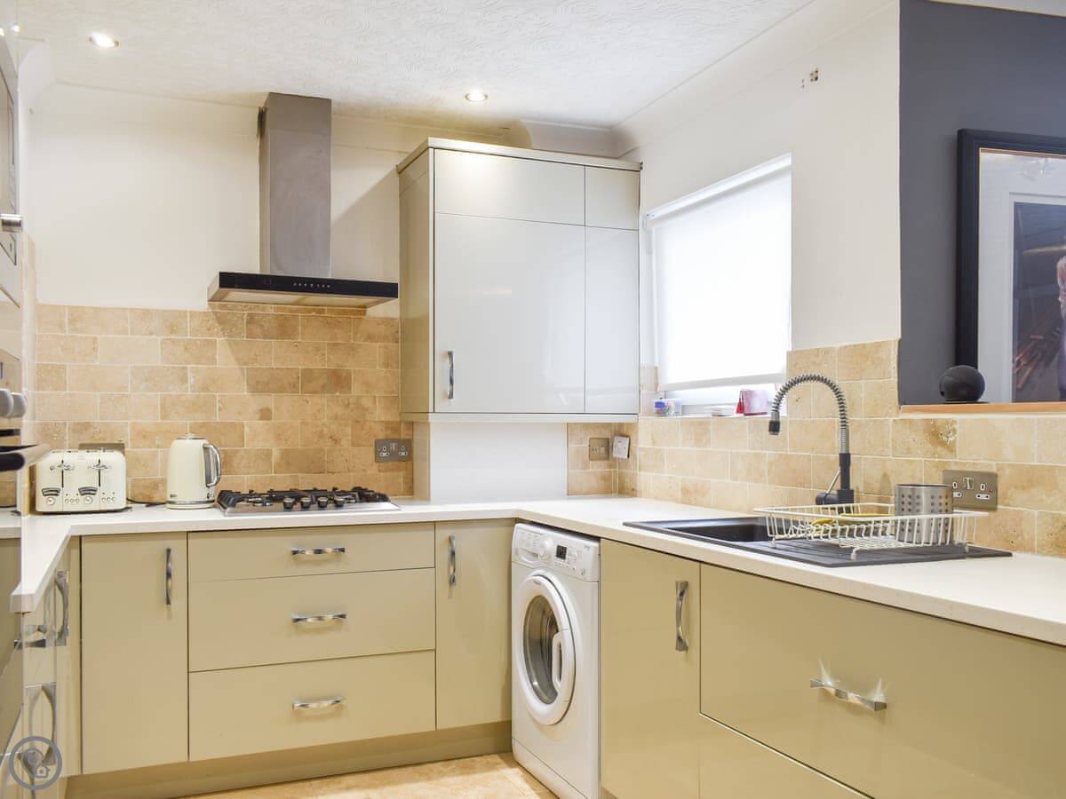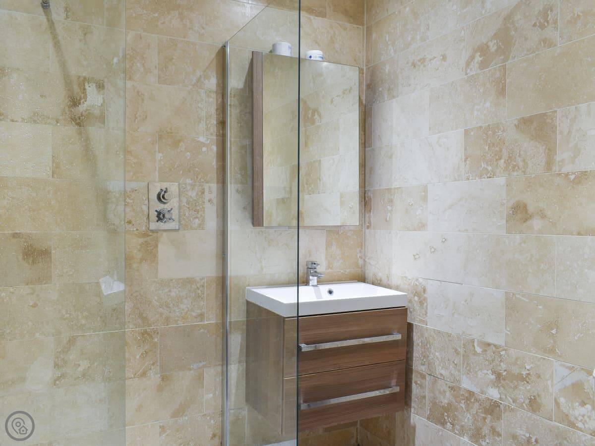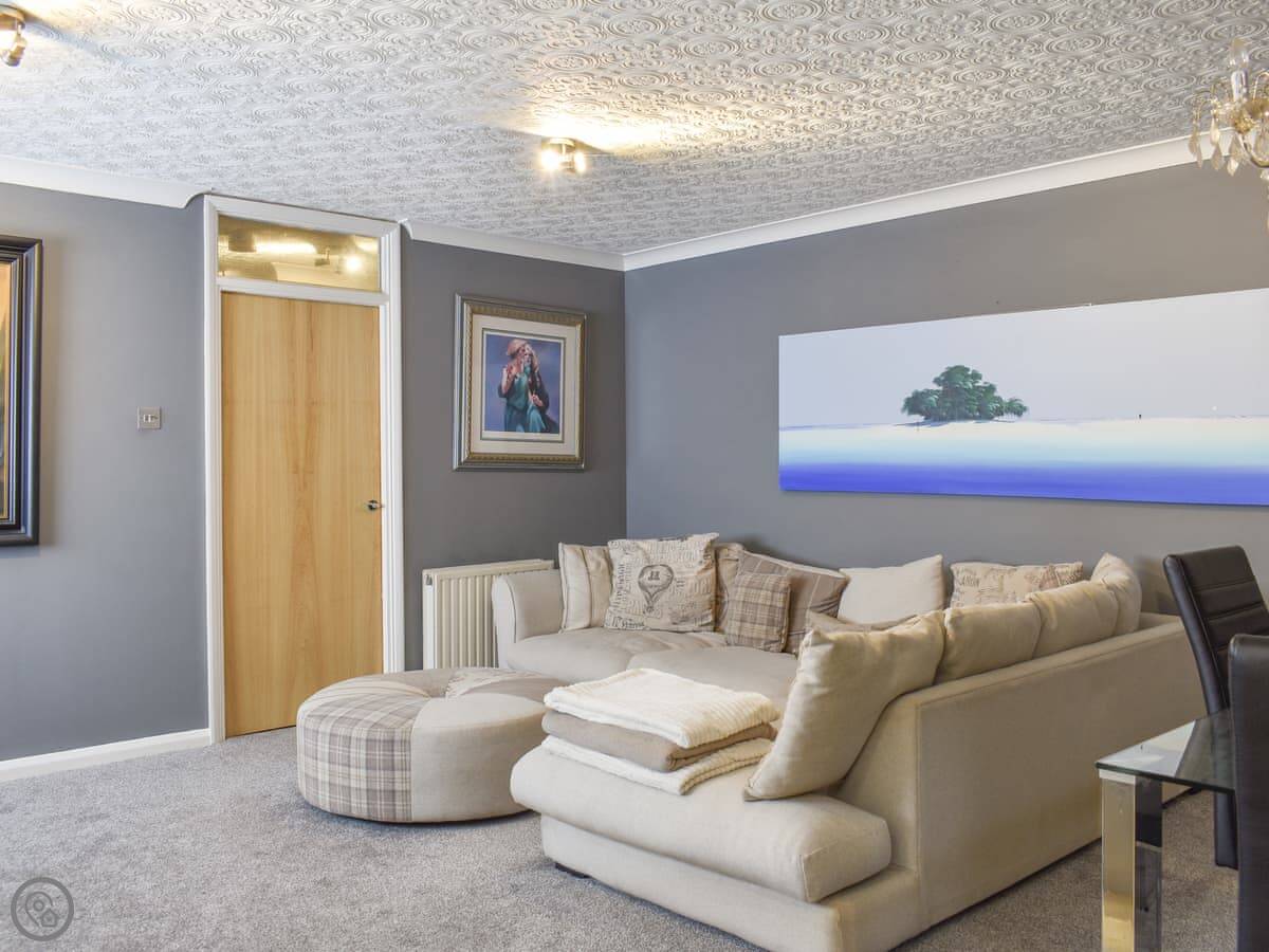 Upon entering the apartment, you will access the spacious living/dining room with beautiful artwork adorning the walls. Put your feet up after a long day exploring the bay and eating ice creams on the sumptuous sofas whilst chatting with your family and friends as a delicious meal is prepared in the open plan kitchen, perfect for entertaining or watching over family games. Fuel up for a day on the beach at the dining table or venture to Boston Tea Rooms on the ground floor below the apartment for a special treat.