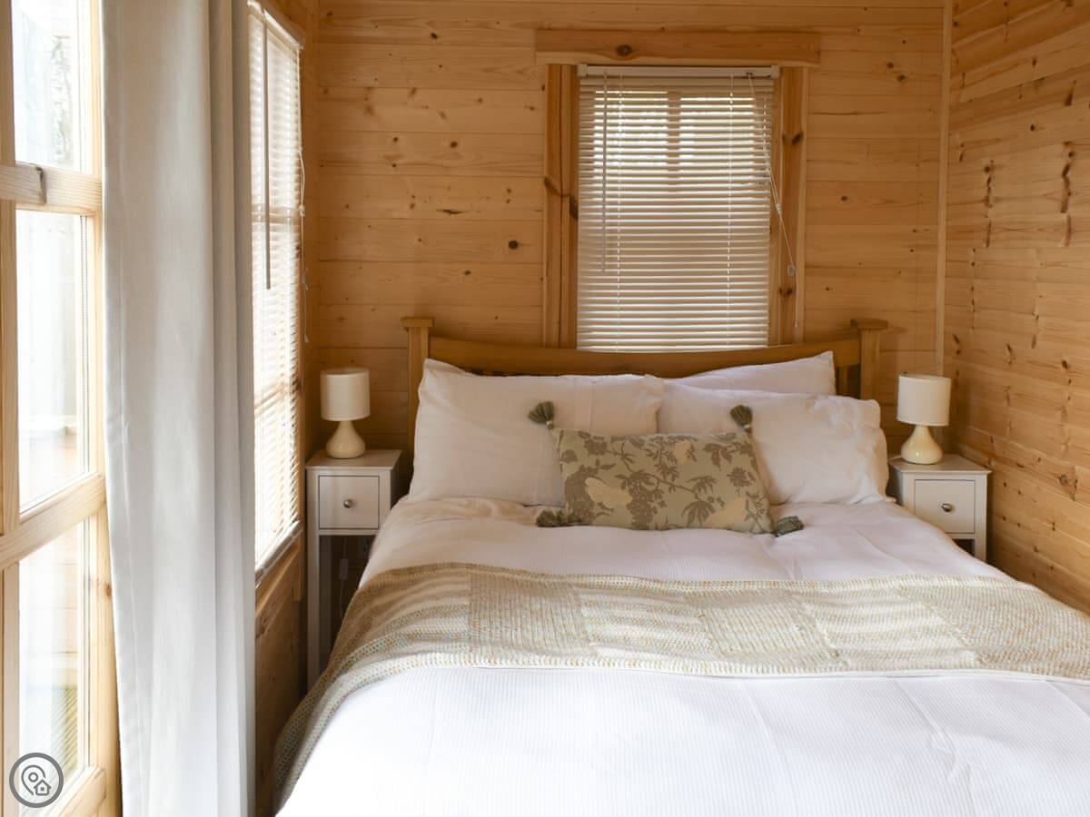 Waterside Cabin is a rare find. This beautiful, secluded wooded cabin is perfect for couples or friends alike looking for a central base in Gloucestershire. It sits on the cusp of the Cotswolds and the Royal Forest of Dean just off Tewkesbury Road in Twigworth. Cosy with touches of luxury throughout, it’s a deceptively spacious lodge ideal for four. It boasts a bubbling hot tub upon the spacious decking with a tranquil lake and its ducks for company.