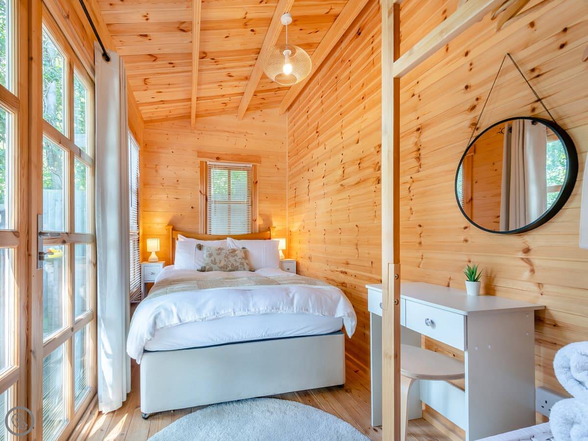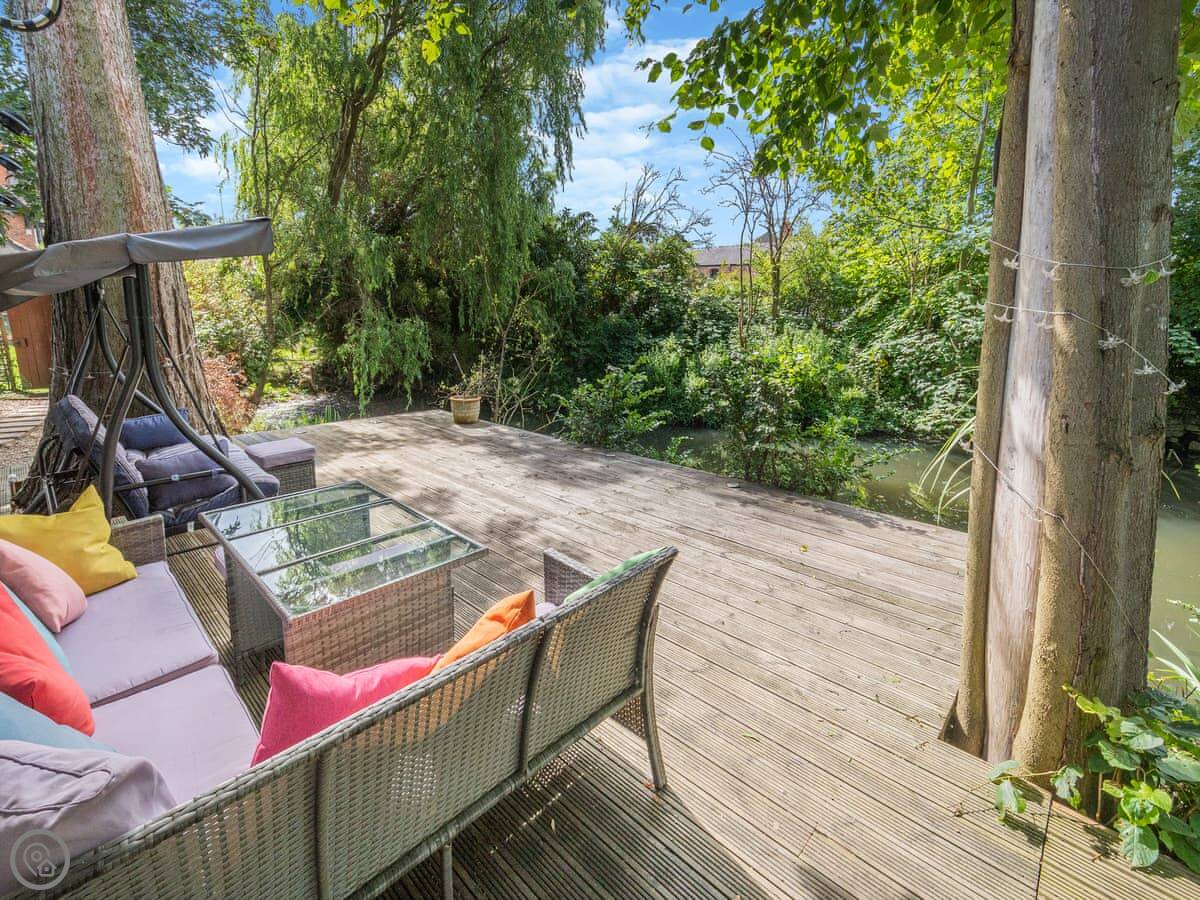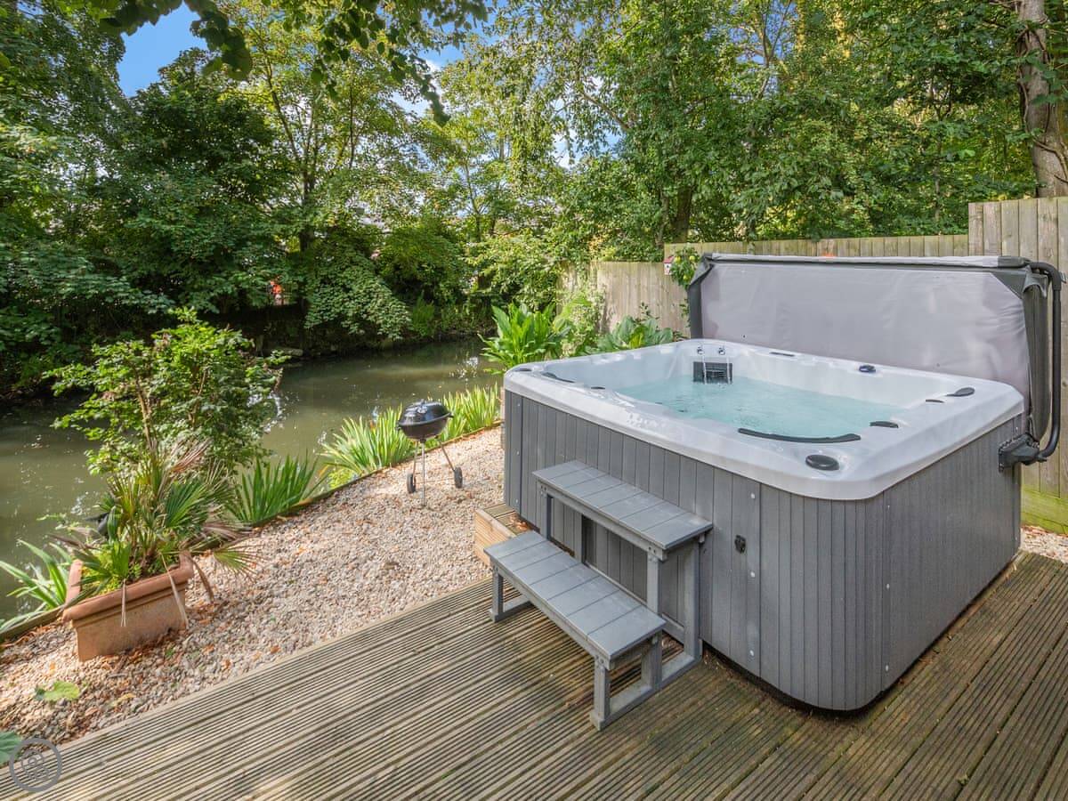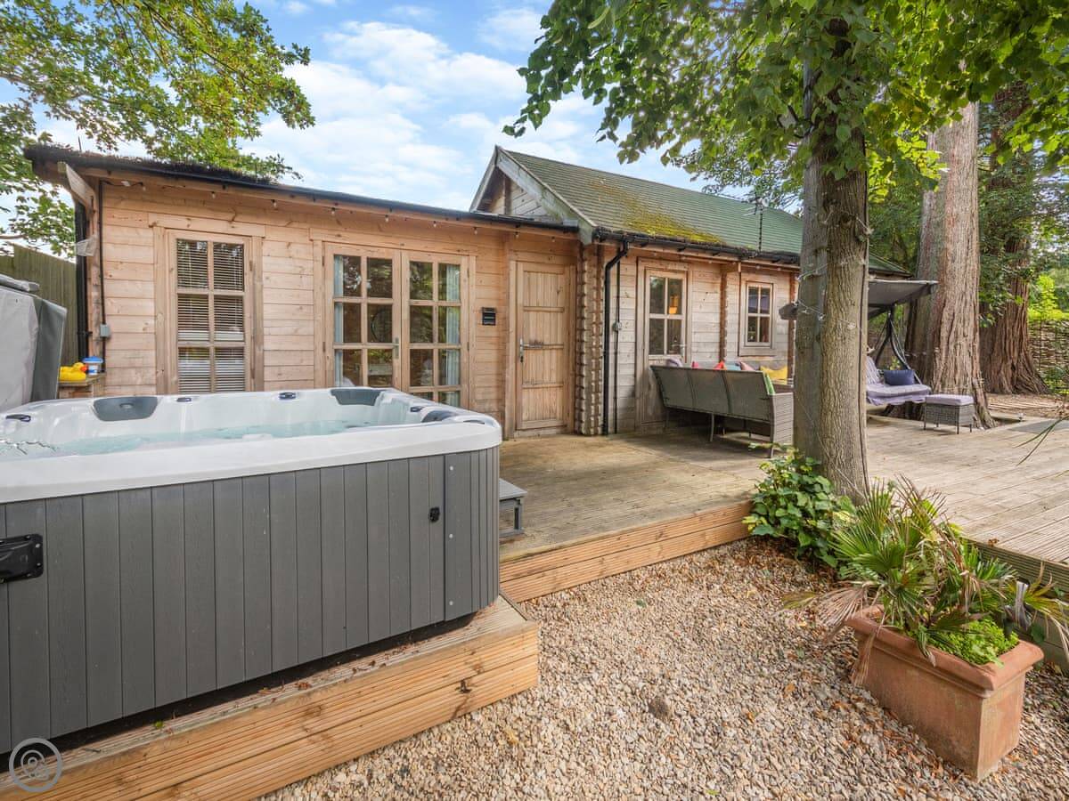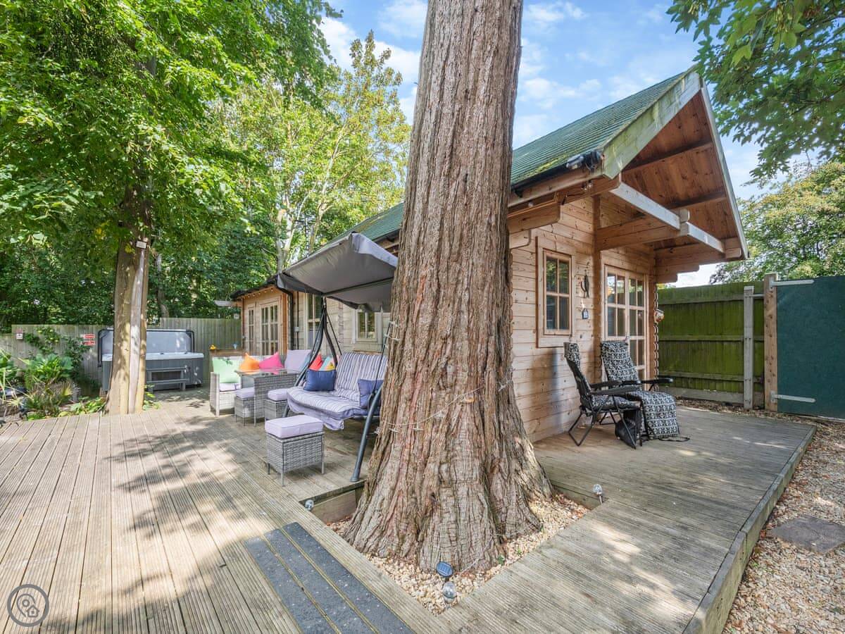 For those seeking a peaceful and semi-rural getaway, along with the perks of nearby suburbia of Cheltenham, Gloucester and Tewkesbury then Waterside Cabin is for you. Waterside is a detached wooden lodge with oodles of rustic charm with all the modern luxuries you could want and need on a short or long jaunt to Gloucestershire. As you arrive through the gates, you will instantly be at peace within the tranquil and secluded setting. It boasts a double bedroom adorned with the finest linens and bedding, and has added extras like fluffy towels and a hair dryer included for guests’ convenience. The master bedroom additionally has direct access to the terrace. The second bedroom includes a set of full-size bunk beds, perfect for friends sharing or children. The open plan sitting room and kitchen is the cosy hub of the lodge; although bijou in size, it is equipped with everything you need including a two-ring gas hob and microwave oven. No need to pack the kitchen sink as it’s equipped with all the useful utensils you will need during your stay. A Smart TV and comfy seating offer a lovely spot on those chillier evenings during the year. Outside a large terrace awaits, a tranquil and relaxing space to unwind and dine al fresco by firing up the BBQ, or take a dip in your very own hot tub before pre-dinner aperitifs on the terrace.