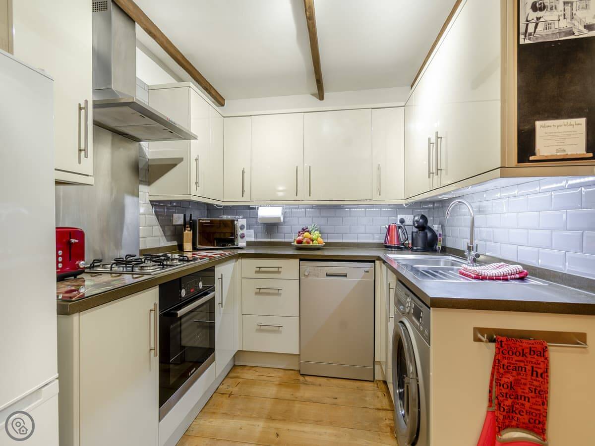 Facilities include a washing machine, a dishwasher, WiFi, and parking for one car on site. There's an electric vehicle charger. Bedding and towels are included. We can provide a cot and a highchair. Sorry, no pets.