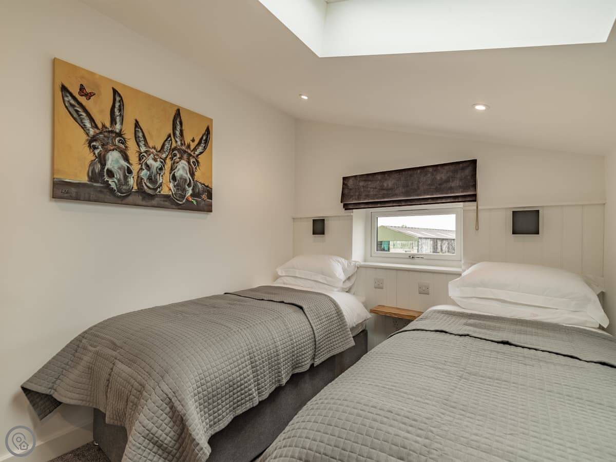 The Old Haybarn is a detached lodge on the edge of Church Broughton. It used to be a hay barn. The conversion is modern, so it's bright and open inside. You get the place to yourselves.