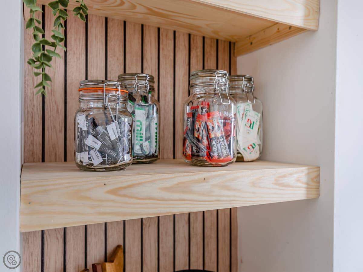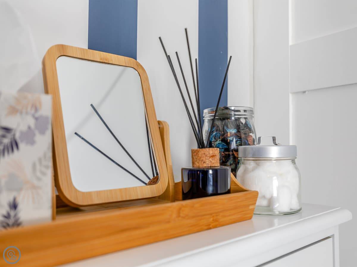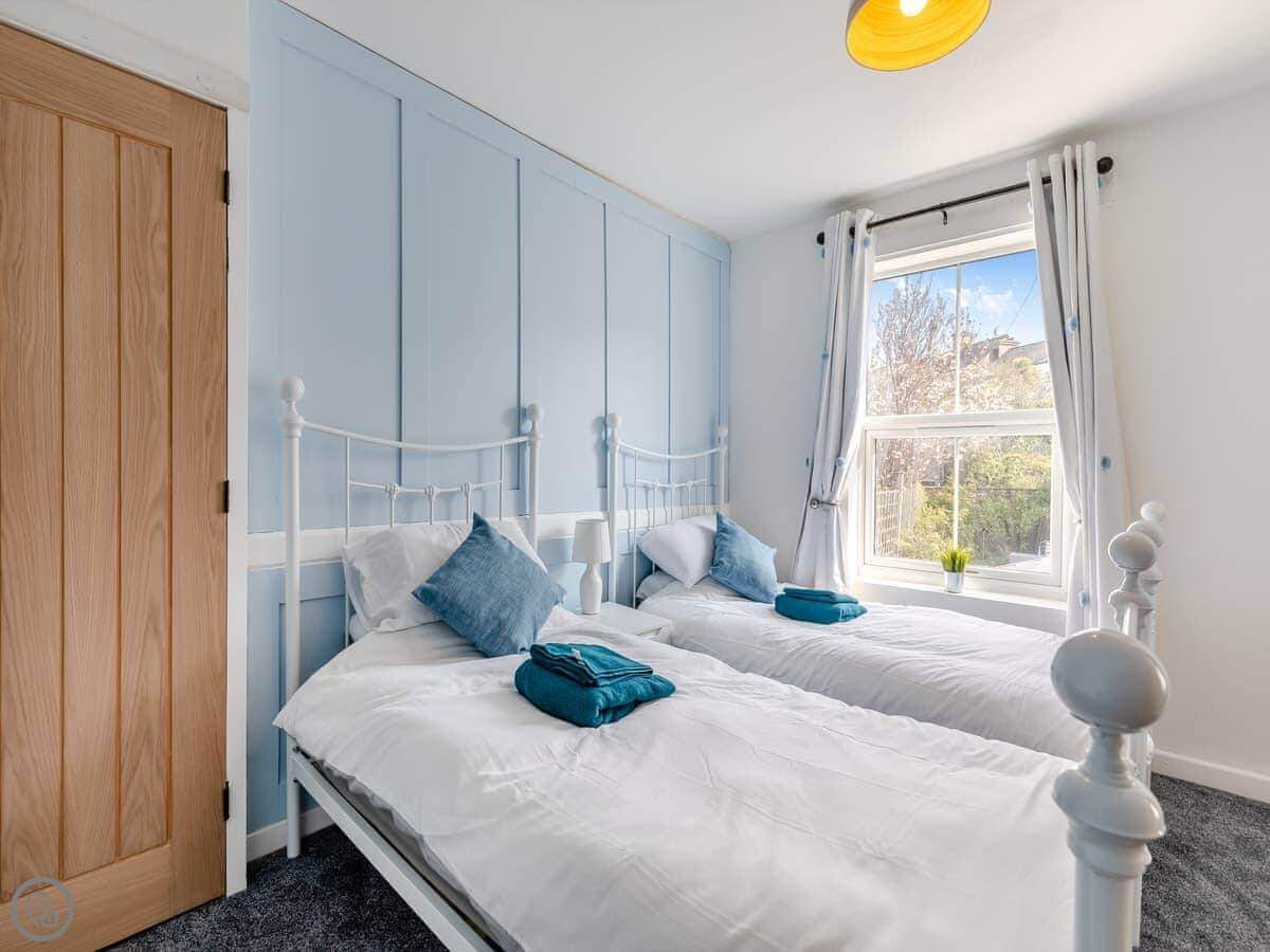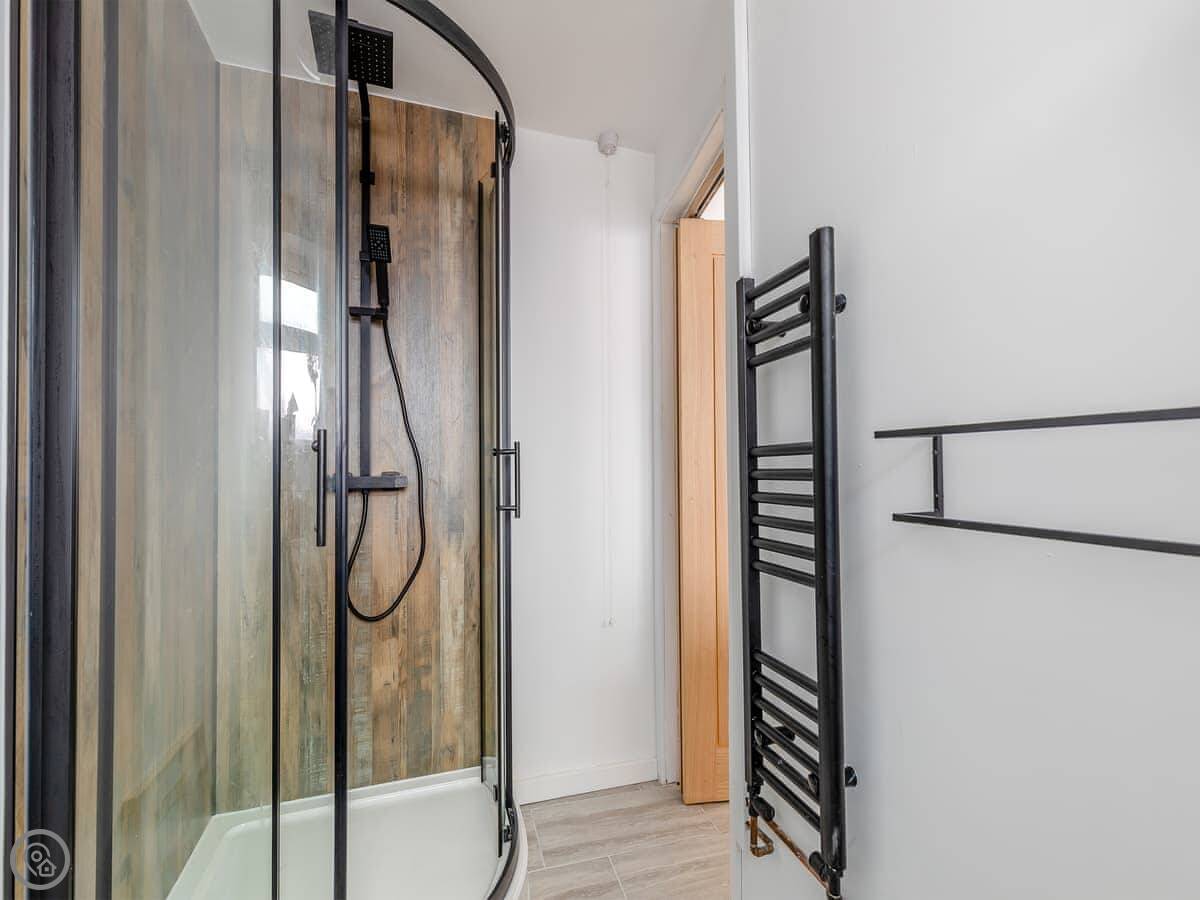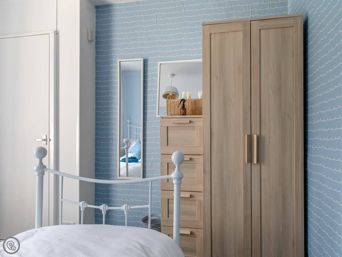 It sleeps six, but that's with using the sofa bed in the living room. There are two proper bedrooms upstairs, one with a double bed and one with twins. There's one bathroom with a shower. It got a 4 Star rating after a refurbishment last year, so it's tidy and fresh.