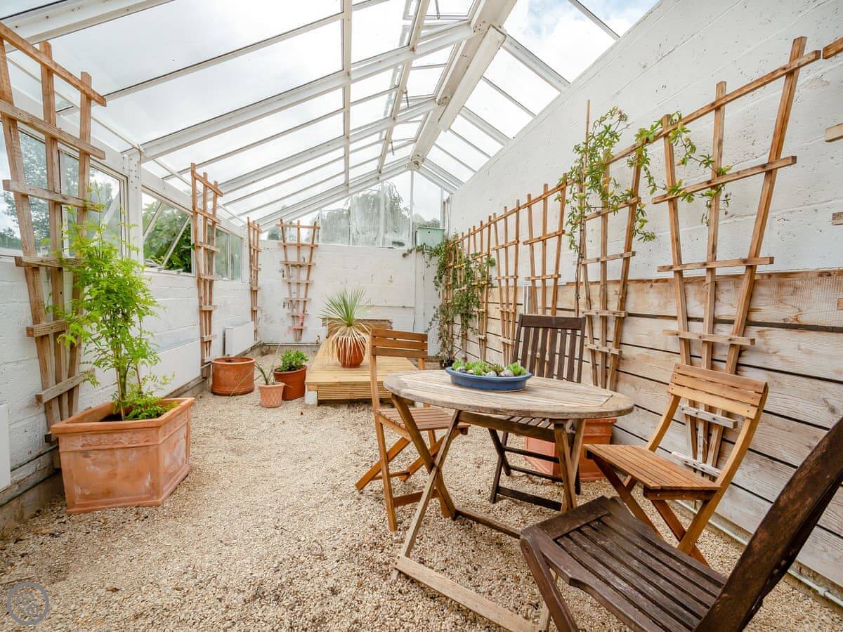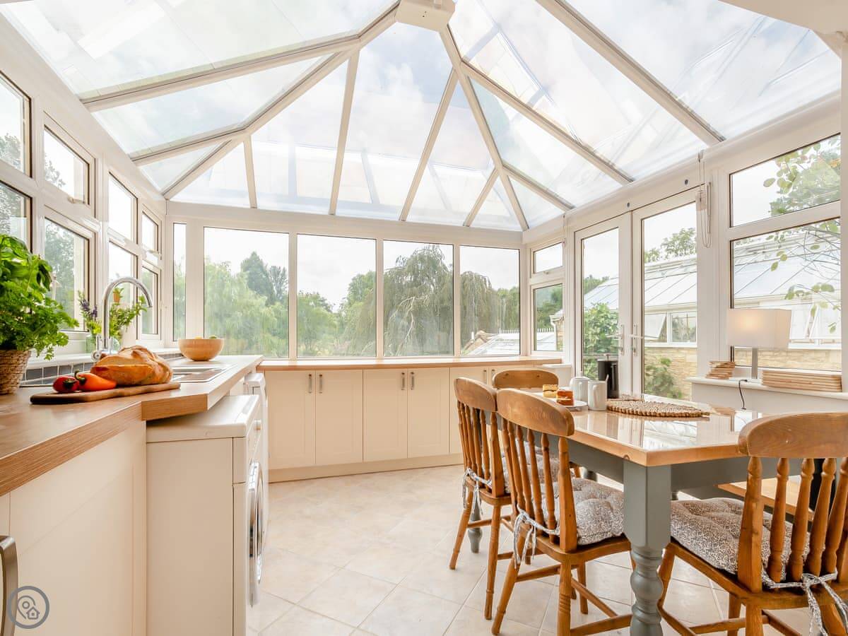 The garden gets the sun most of the day, looking south over the fields. There's a patio and a lawn. The separate conservatory is just there if you need more space.