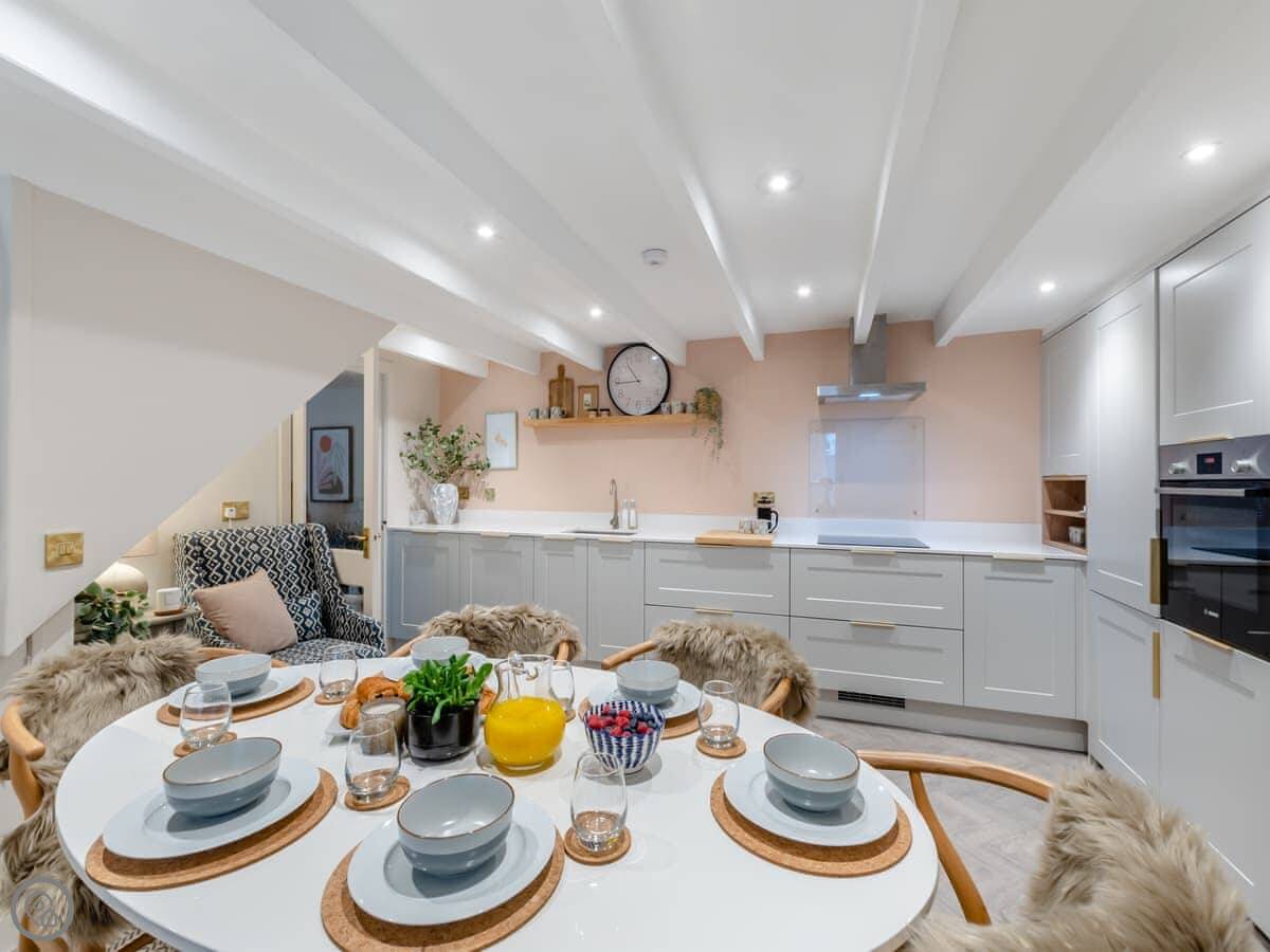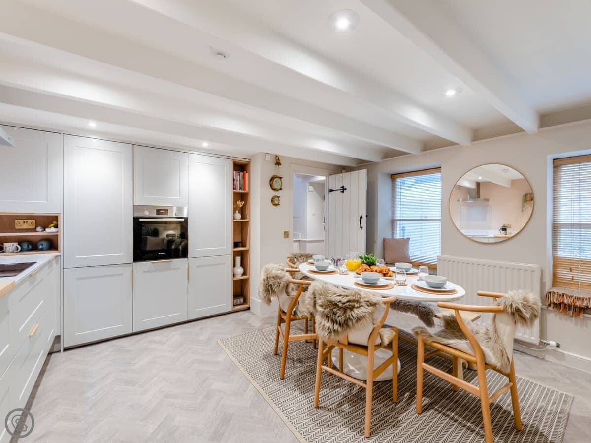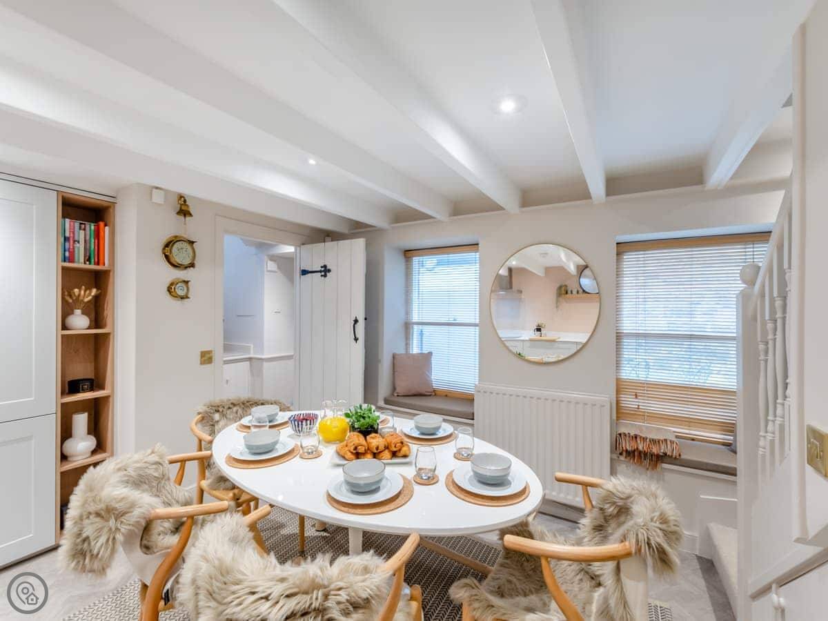 This charming Grade II listed cottage, bursting with unique character sits proudly on the historic street in Alnmouth. A historic building situated in central Alnmouth a picture postcard village and only a two-minute walk to the magnificent beach and estuary. The living room has a high cathedral beamed ceiling with super comfy sofas in a bright, and welcoming space with a traditional decorative inglenook fireplace with a wonderful wood burner to cosy up in front of on those cooler evenings. The large modern kitchen/dining room is just the area to dust off your cookbooks and rustle up a hearty Northumbrian meal! The well-equipped cupboards have a smoothie maker, blenders, and everything you require to make a meal for the family to enjoy. Jasmine Cottage has a small second living room off the kitchen and is perfect for guests using the very useful ground floor double bedroom and separate shower room. On the first floor you will find a galleried large super kingsize bedroom with, a further twin and single room along with a family bathroom.