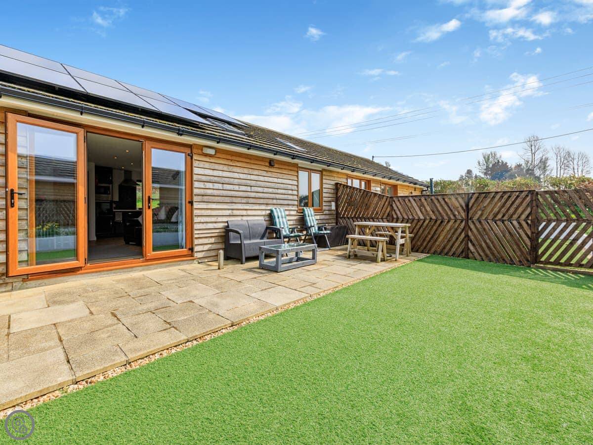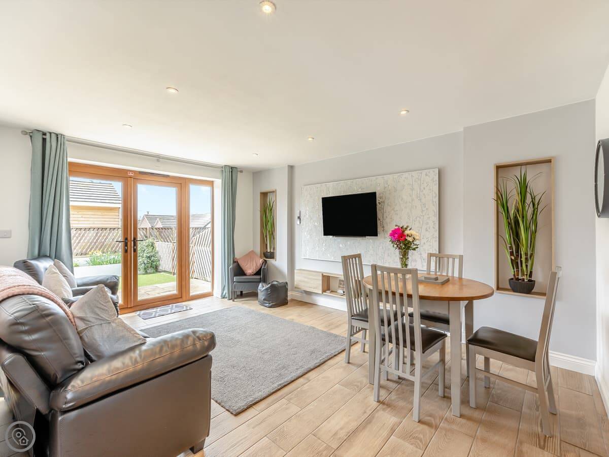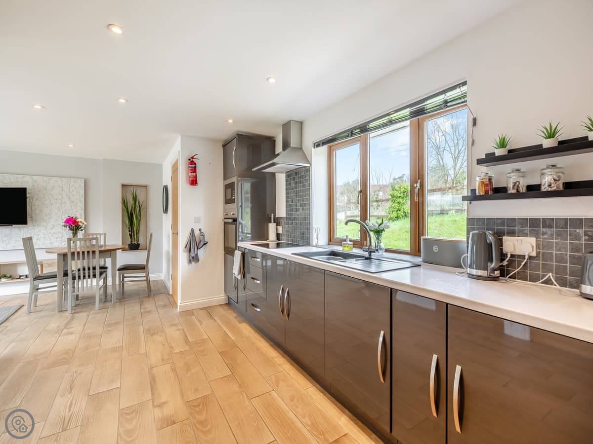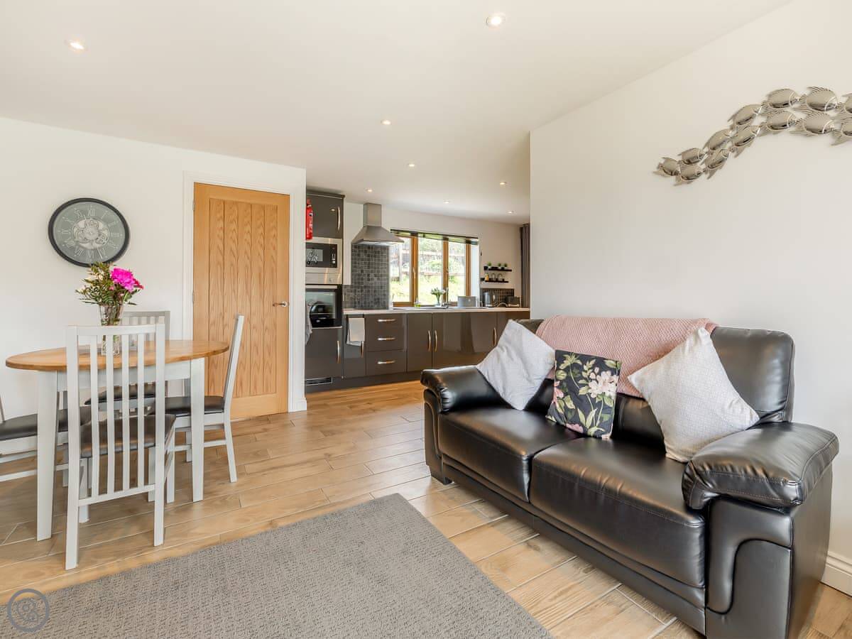 Both properties are identical layouts inside, enjoying underfloor heating throughout and with a spacious open plan living, kitchen and dining areas. The gorgeous kitchens are very well equipped with everything you will need during your stay, including a handy washer/dryer. The living room has comfy sofas, Smart TV to catch up on your latest box set and large French doors leading to your private enclosed garden which has a lovely patio area and artificial grass allowing children and your four legged friends to enjoy the garden at any time of year. In Honey Bee you will find a kingsize bed while Bumble Bee has a double bed, both have an en-suite shower rooms with walk in showers, the en-suite is a ‘Jack and Jill’ bathroom which allows access from both the bedroom and main living area. A ‘Murphy’ pull down double bed is available in the main living area with curtain to separate, allowing four guests to comfortably enjoy these wonderful retreats in the country. Opposite the parking area you will find the owner’s 4-acre field for walking the dogs and enjoying the views.