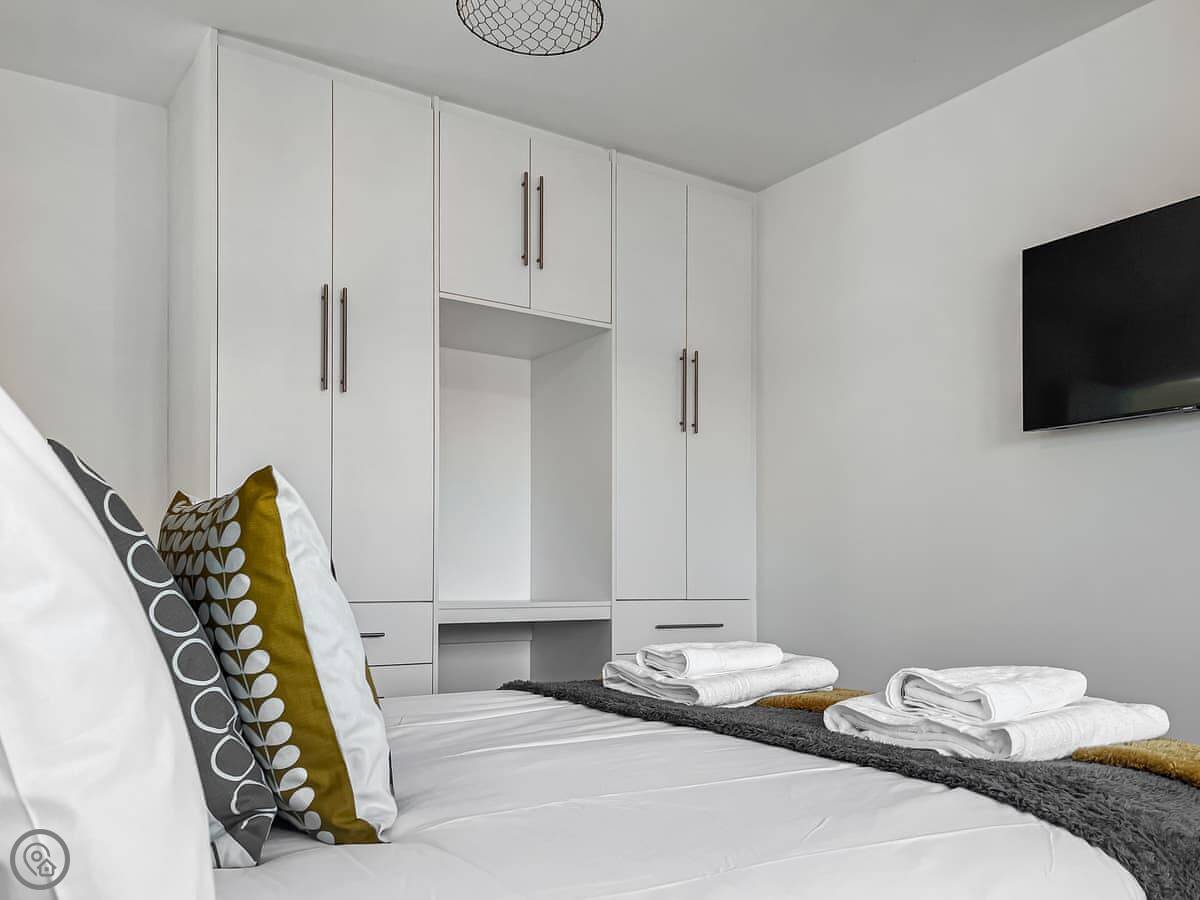 We allow up to two well-behaved dogs. Bedding and towels are included. There's WiFi, a Smart TV, dishwasher, and washing machine.