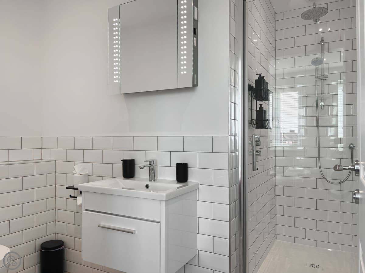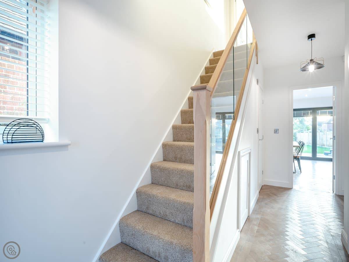 The house has a 4 Star rating. It's modern and spacious. The downstairs is mostly open plan, with big doors that open onto the garden. There's a separate utility room which is good for muddy boots and coats after being out walking. Underfloor heating throughout.