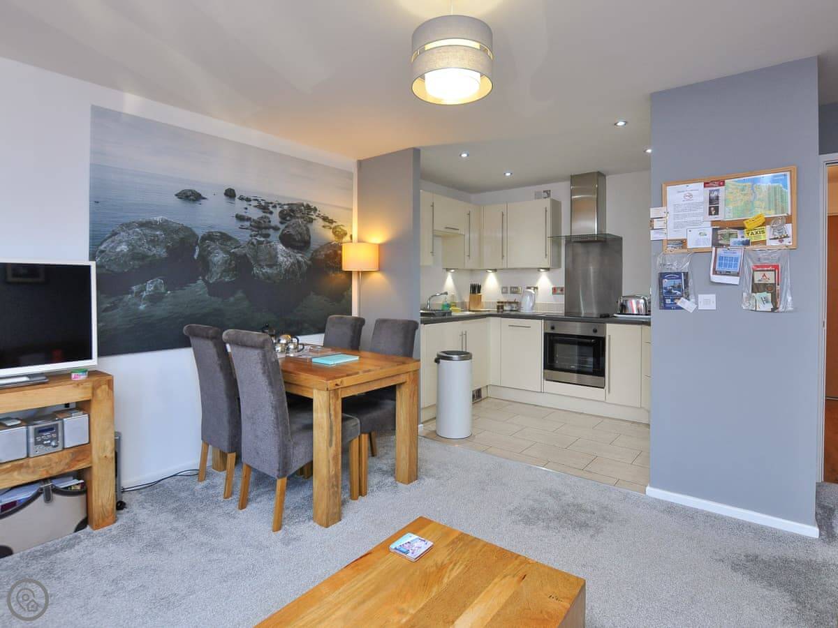 Set in this modern development in a peaceful residential area. Stepping inside you have an open plan living area with large bay windows. This is a bright and welcoming room, with two comfortable sofas to relax on in an evening. The kitchen is well equipped and ready for you to create all your favourite meals. If you love seafood this is an ideal destination. There are two bedrooms, the master double as well as a twin room, both well presented with your comfort in mind. Plus a family bathroom, with a shower over the bath.