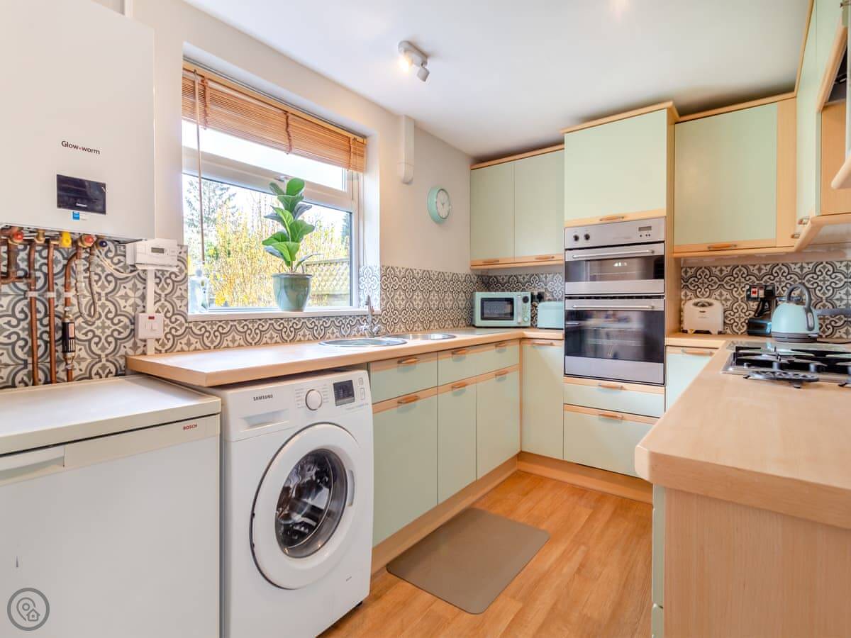 Outside, there's a private, enclosed garden with a patio. It gets the sun in the morning. There's parking on the drive.