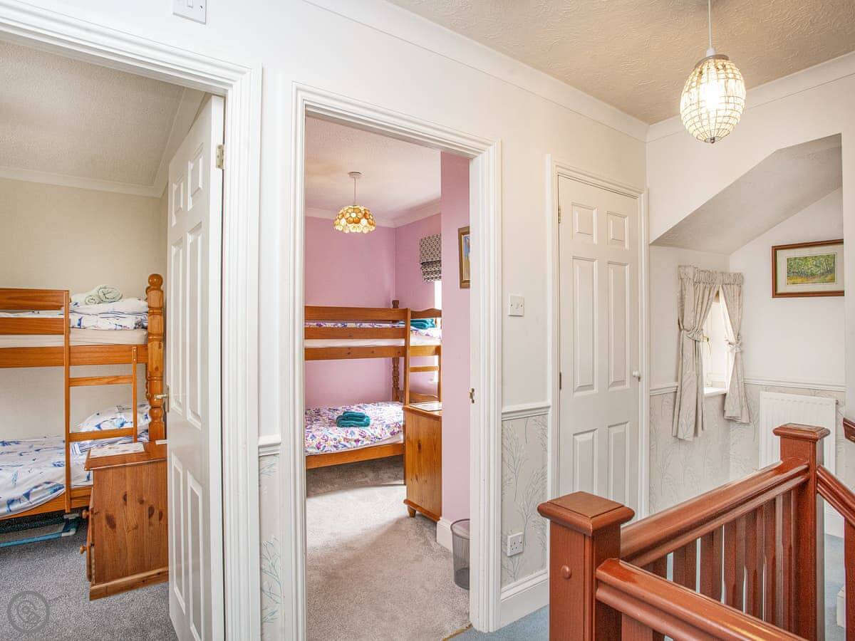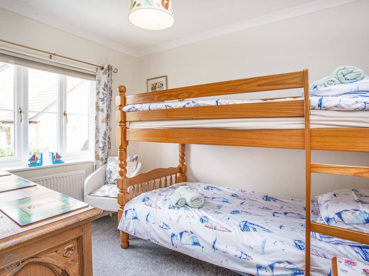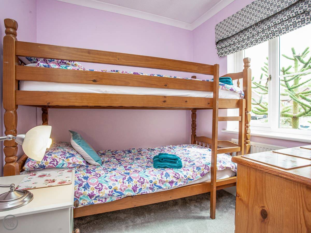 The holiday home is the perfect base for a family or a group of friends looking for a relaxing coastal holiday. As you enter the property, head into the cosy living room which is comfortably furnished with plenty of seating and a smart TV with Freeview. The kitchen is well-equipped with everything needed to prepare a home cooked meal and the dining room leads through to the conservatory which offers a bright and peaceful space to read a good book. The garden is a real suntrap and has been lovingly setup for guests to enjoy the distant sea view with a patio area and outdoor seating. Head upstairs to discover the four beautifully furnished bedrooms and the family bathroom. The master has been beautifully furnished with a super kingsize bed, a Freeview TV and an en-suite shower room which enjoys the best sea view in the house! The second bedroom has a kingsize bed and the other two each have a set of bunk beds.
