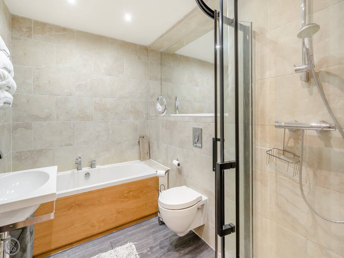 It sleeps six. Three bedrooms, two bathrooms. One of the bathrooms is an en-suite off a double bedroom. The rating is 4 Star. It's got all the standard stuff: WiFi, TV, dishwasher, washing machine.