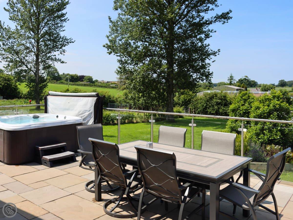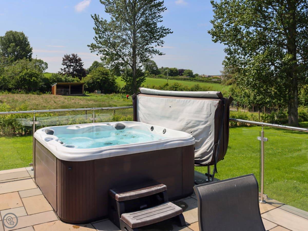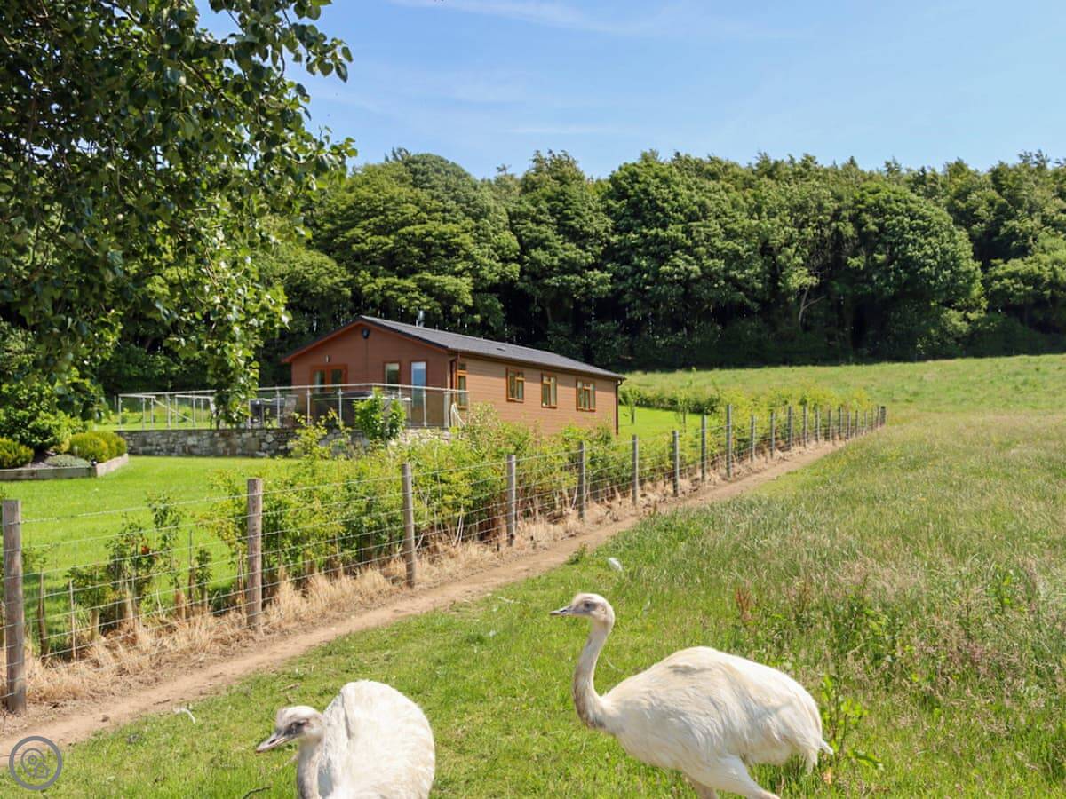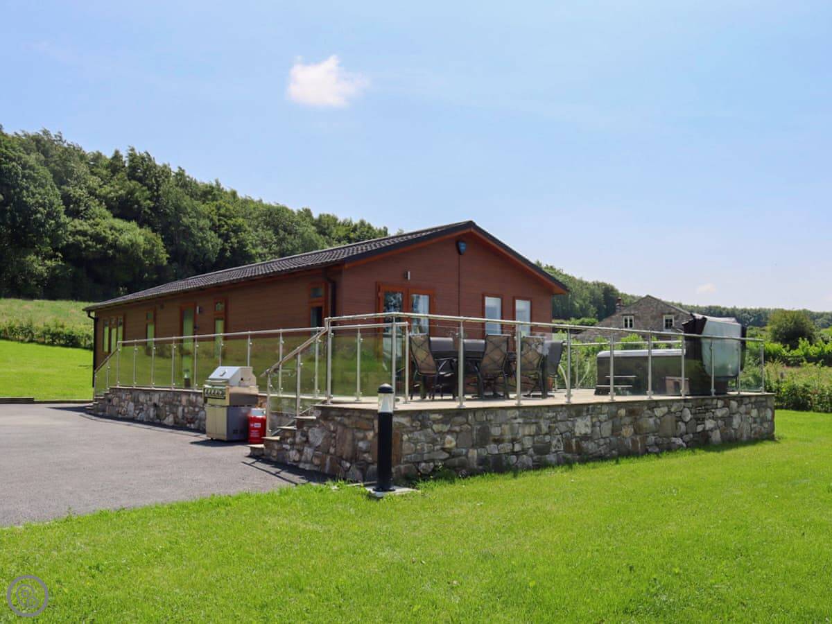 Holly Lodge is a detached lodge in Lloc, Flintshire. It’s a quiet spot, a bit out of the way. You get your own garden and a patio with a hot tub which looks out over the fields.