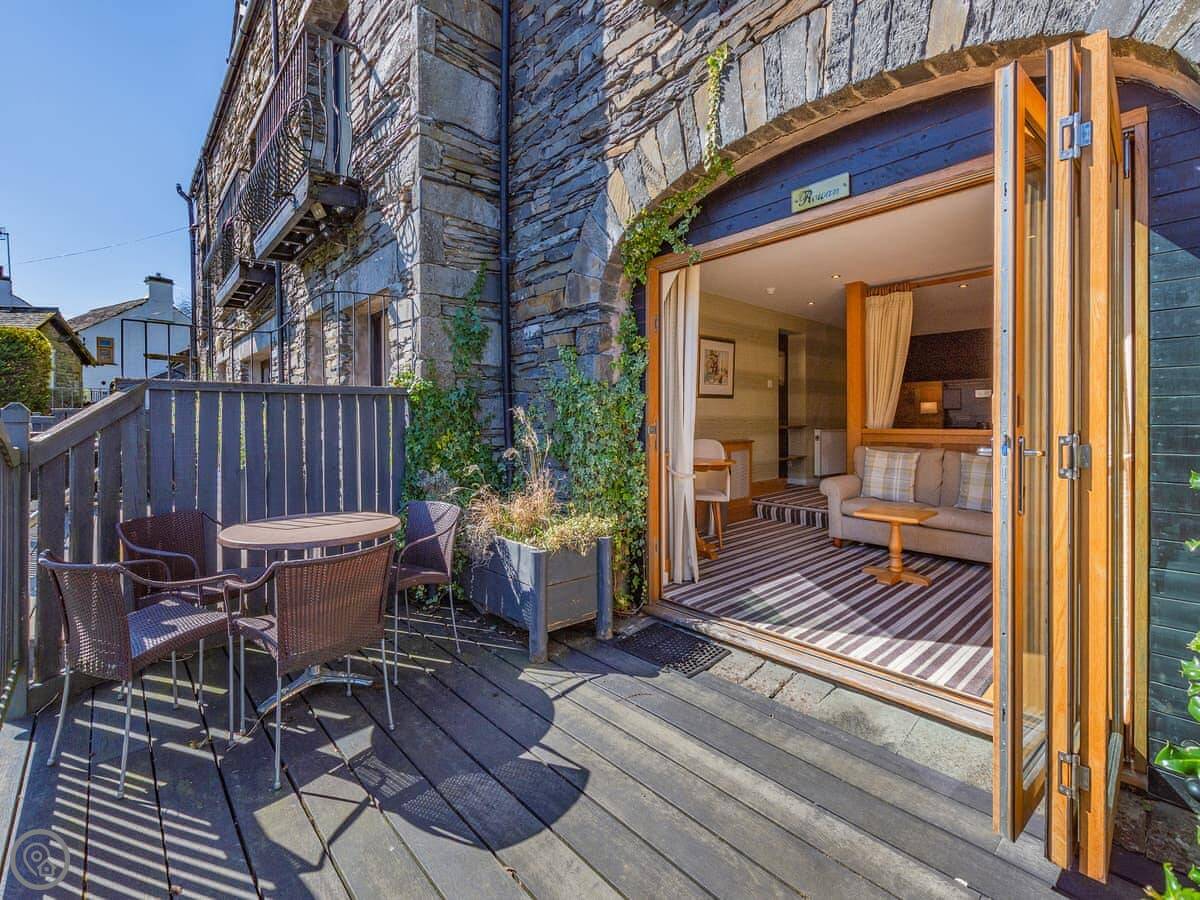 Outside, there are bifold doors that open onto a decking area. It gets the sun and you can sit out there.