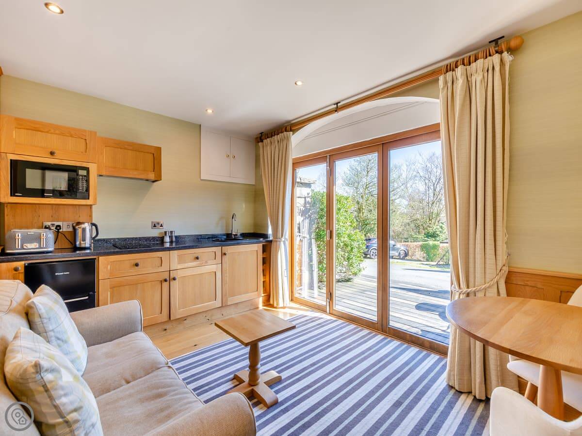 You're well placed for walking and cycling. For other things, the Beatrix Potter house at Hill Top is nearby, and there's the Motor Museum in Hawkshead itself. There's a good vegetarian restaurant on the estate if you don't fancy cooking. The nearest pub is about a mile and a half away.