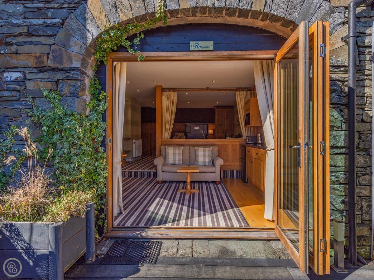 Rowan is part of the Yewfield Estate. It's on an 80-acre site with woods and meadows. You can walk from the door straight into the estate or down the hill into Hawkshead village. Tarn Hows is a short walk away, which is nice for a picnic. National Trust Tarn Hows.