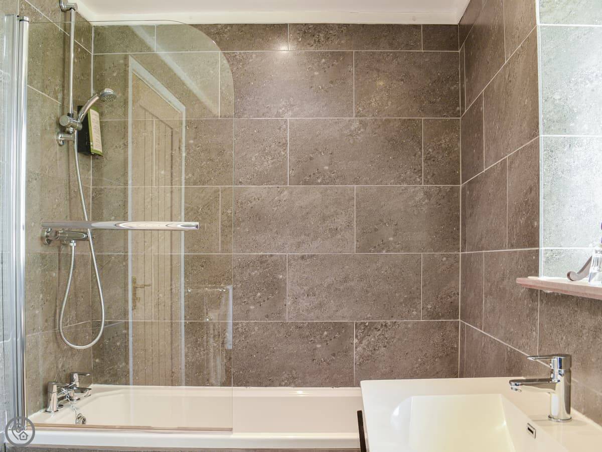 As you enter the apartment, you step into a comfortable open plan room, offering both sleeping and dining areas. The super kingsize bed beckons you for a sound night’s sleep after a busy day of walking or sightseeing and it can be hard to leave in the morning as you can watch the TV from its cosy embrace. The kitchen is well-appointed offering all the space and amenities you need to prepare either a picnic or a romantic meal for two. A small corridor leads to the bathroom off to the right, with a bath and shower above and the kitchen off to the left. The accommodation opens up by bifold doors to the decking area outside offering the perfect place to enjoy a glass of wine on a warm evening. Attached to the entrance of the apartment is a wonderful quaint decking area which can be a great sun trap when the weather is beaming.
