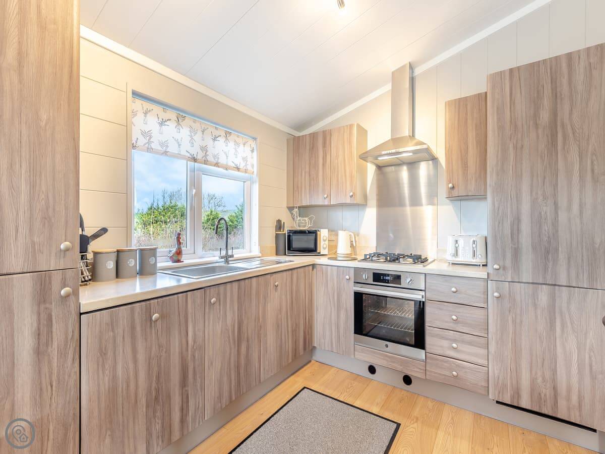Pines Lodge is on the Pheasant Fields site in Lloc, not far from Holywell. It's detached, so you're on your own. It's got three bedrooms, sleeps six, and has two bathrooms.