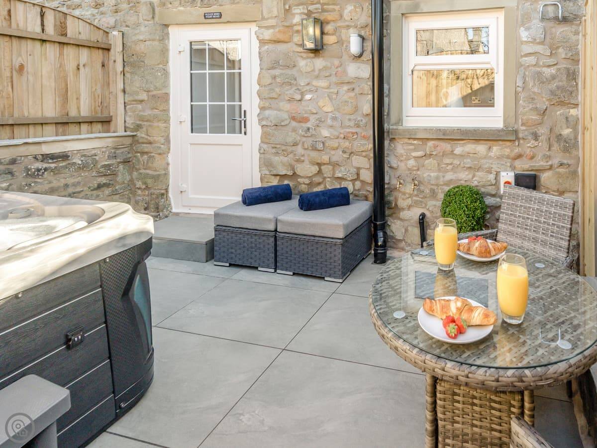 Blossom Tree Cottage has been recently renovated with style and comfort in mind. It is a one-bedroom cottage providing comfortable accommodation for up to four guests. Additional sleeping arrangements can be found in the living room with the cosy double sofa bed . Blossom Tree Cottage was built in the 1600’s and boasts plenty of character throughout the property. You are greeted by a cosy living room with sumptuous sofas to relax on after a long day exploring the area. Curl up as your favourite show or movies plays out on the TV and plan your activities for the remainder of your trip. A fully fitted newly installed kitchen awaits you providing everything you need to rustle up those home cooked meals to be served at the dining table or if you prefer not to cook why not treat yourself at a local restaurant or get your dinner delivered straight to your door with a local takeaway! When sleep calls, wander upstairs to be greeted by a good-sized bedroom with a double bed. The perfect place to sink your head down and enjoy a relaxing night sleep ready for the day’s adventures ahead. The bathroom can also be found on the first floor benefitting from a bath, shower cubicle, toilet and hand basin. In the evenings venture outside to relax and unwind in the hot tub located in the private garden at the rear of the property.